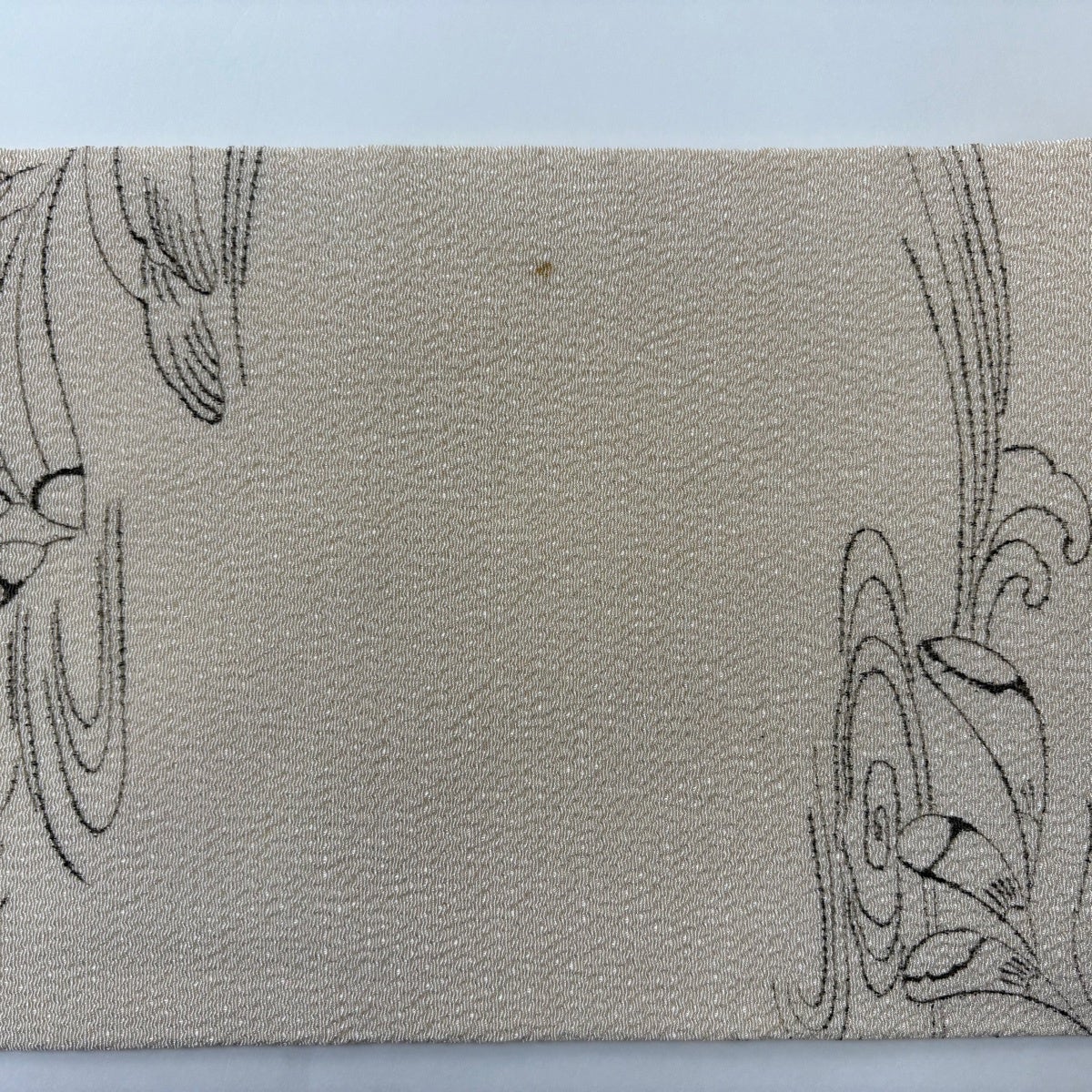 名古屋帯 秀品 蔦 シルエット 縮緬 ベージュ 正絹