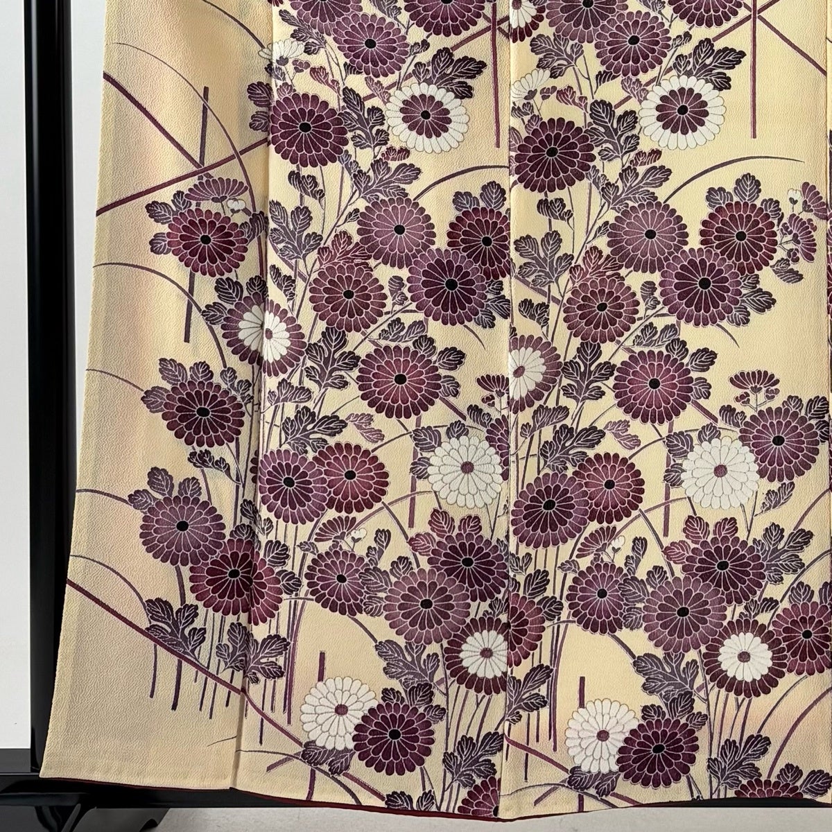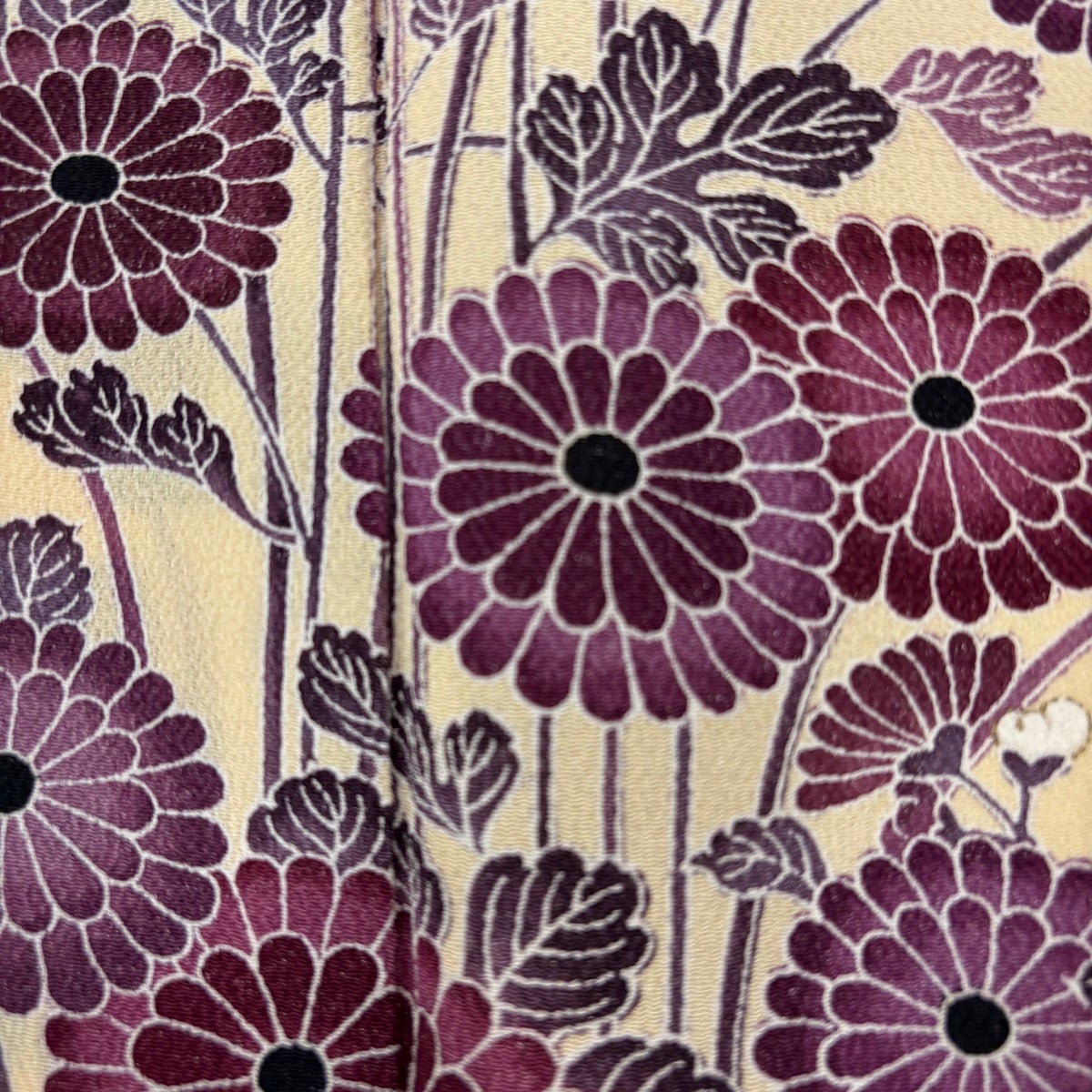 【美品】 付下げ 身丈154cm 裄丈62.5cm S 単衣 菊 家屋 縮緬 クリーム 正絹 名品