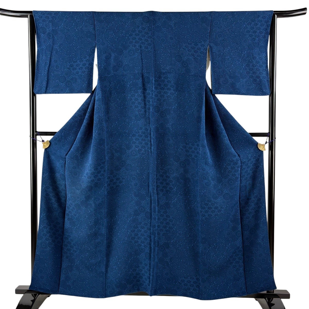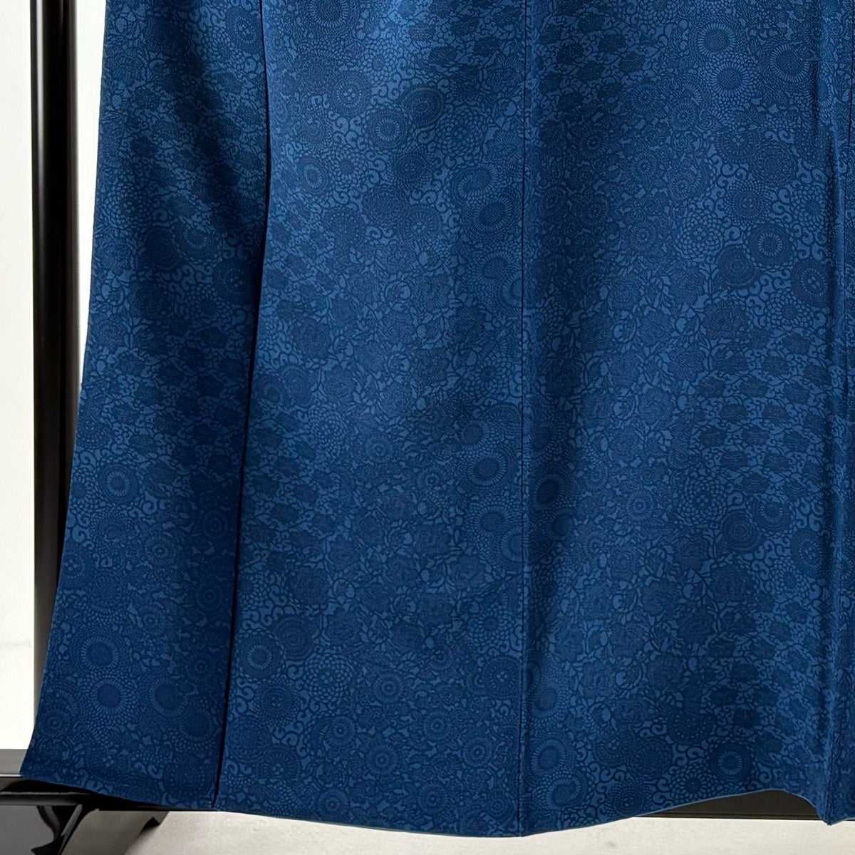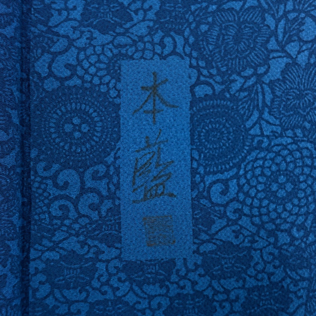 江戸小紋 身丈160cm 裄丈64.5cm M 袷 落款あり 鮫 縮緬 青黒 正絹 秀品 一つ紋