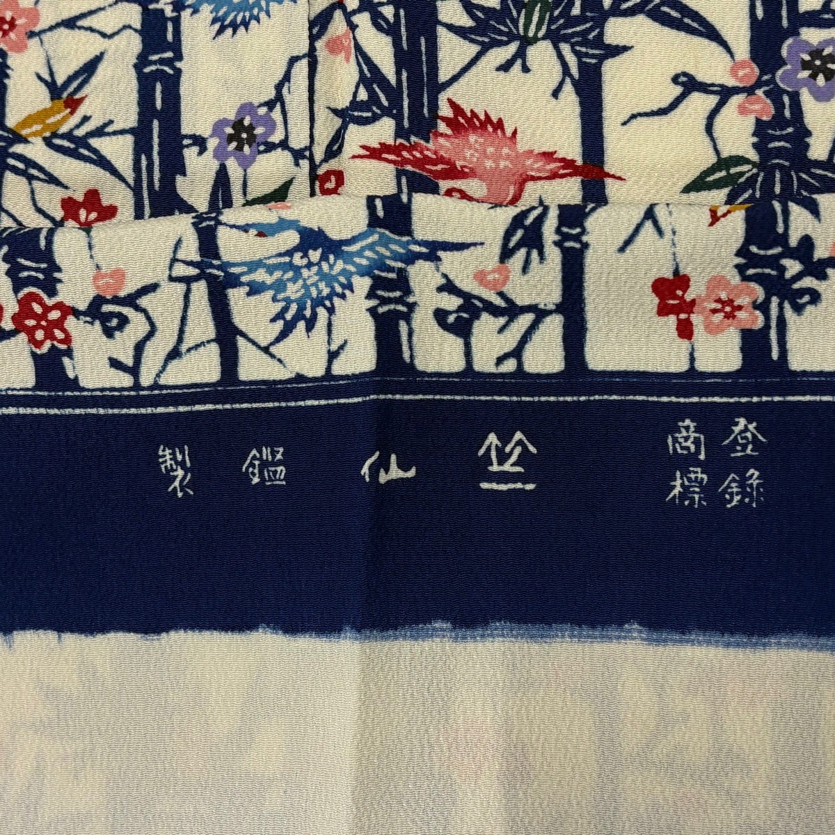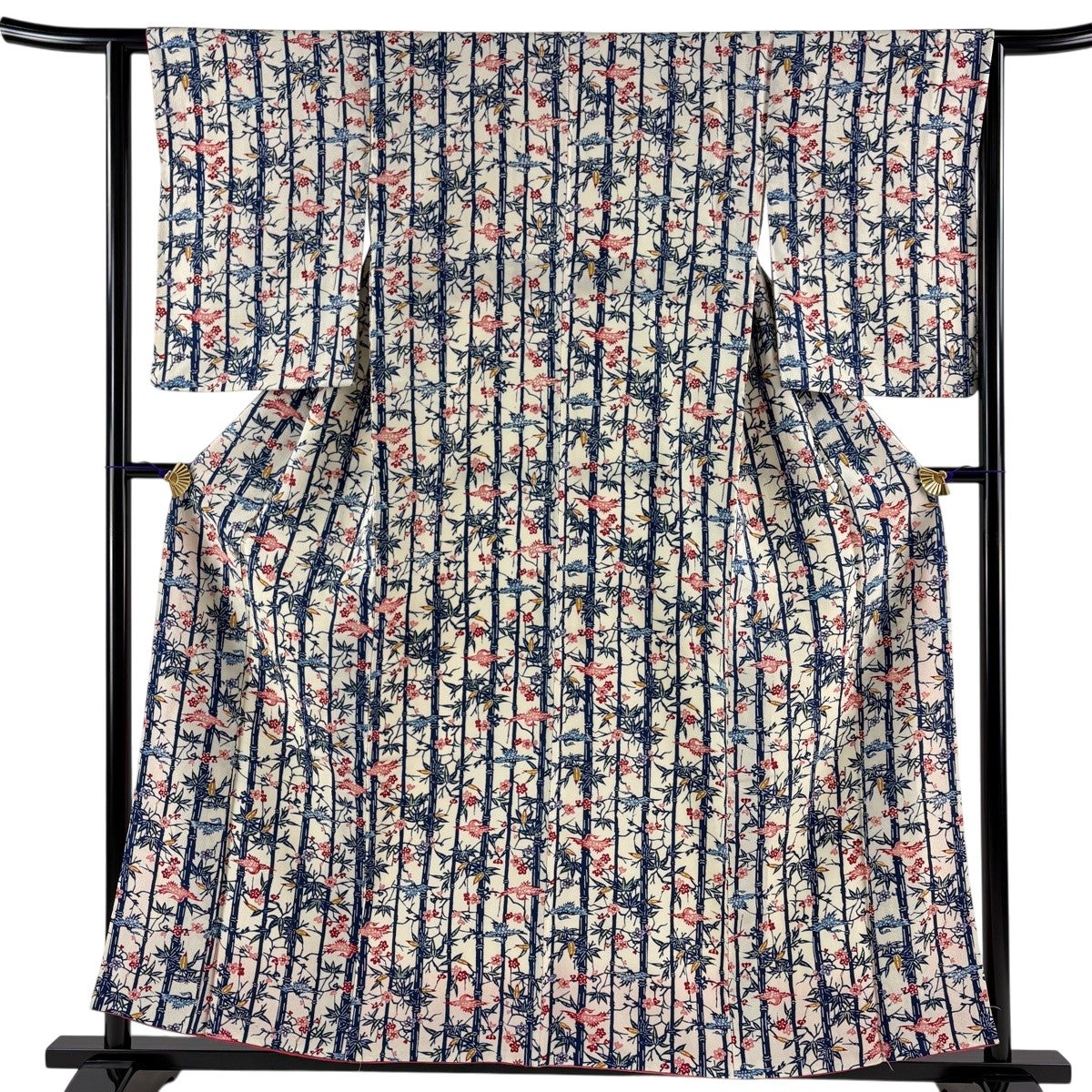 【美品】 小紋 身丈157cm 裄丈62.5cm S 袷 鳥 竹 縮緬 ベージュ 正絹 名品