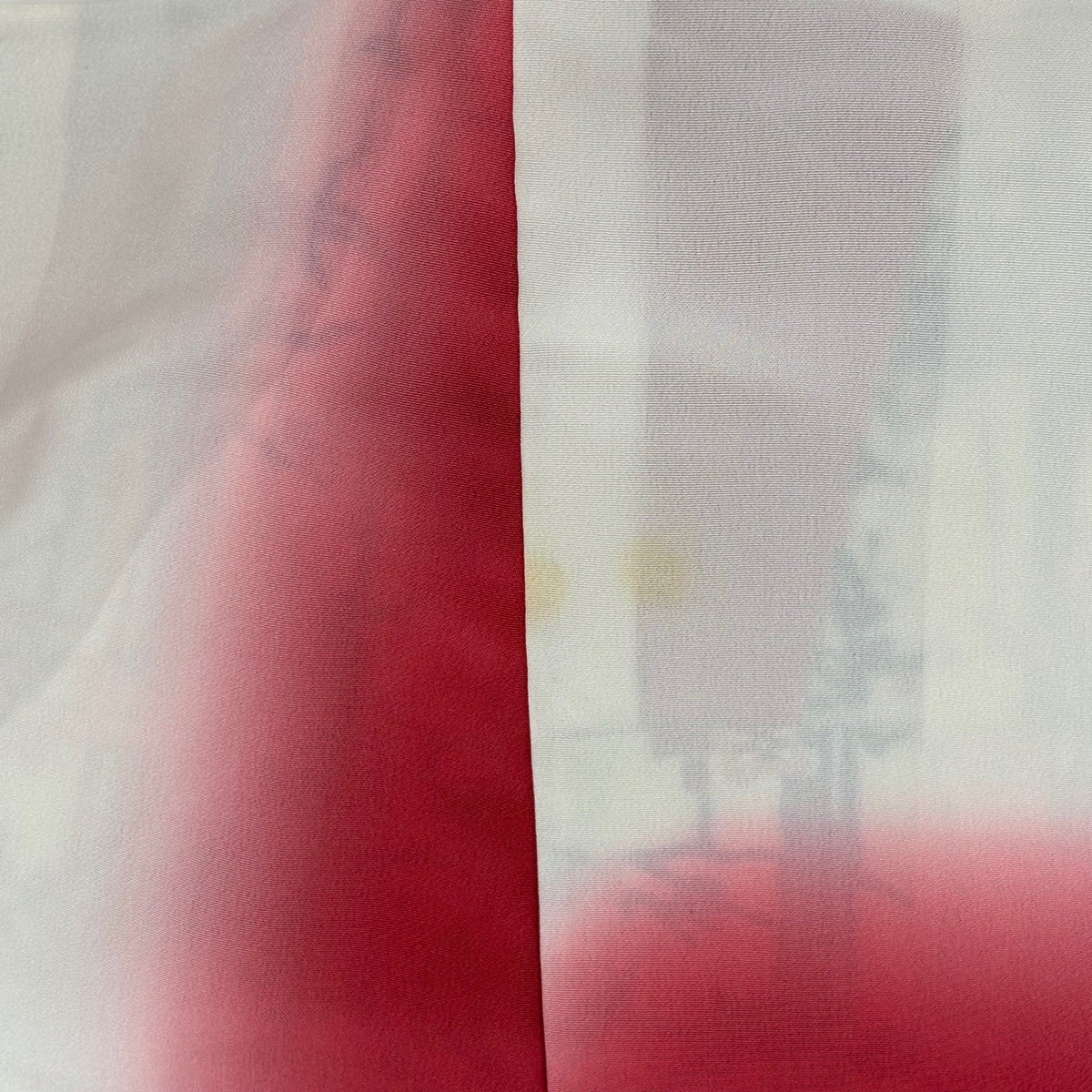 付下げ 身丈159cm 裄丈64.5cm M 袷 辻が花柄 松川菱 ぼかし 縮緬 茜色 正絹 秀品