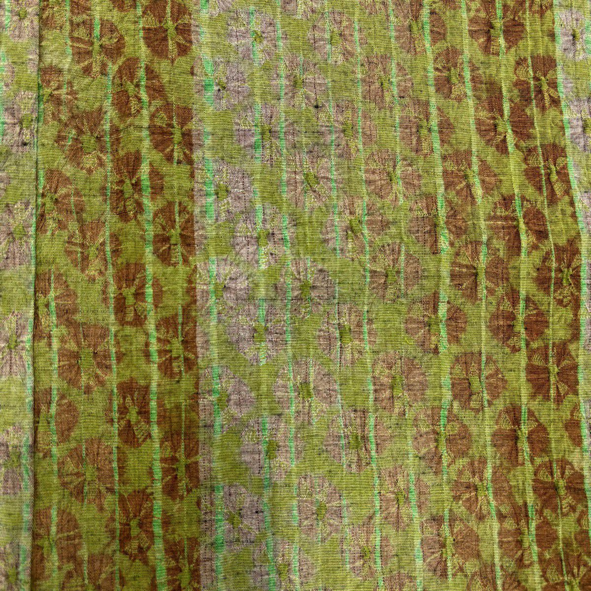 【美品】 名古屋帯 優品 幾何学模様 花唐草 茶色 正絹
