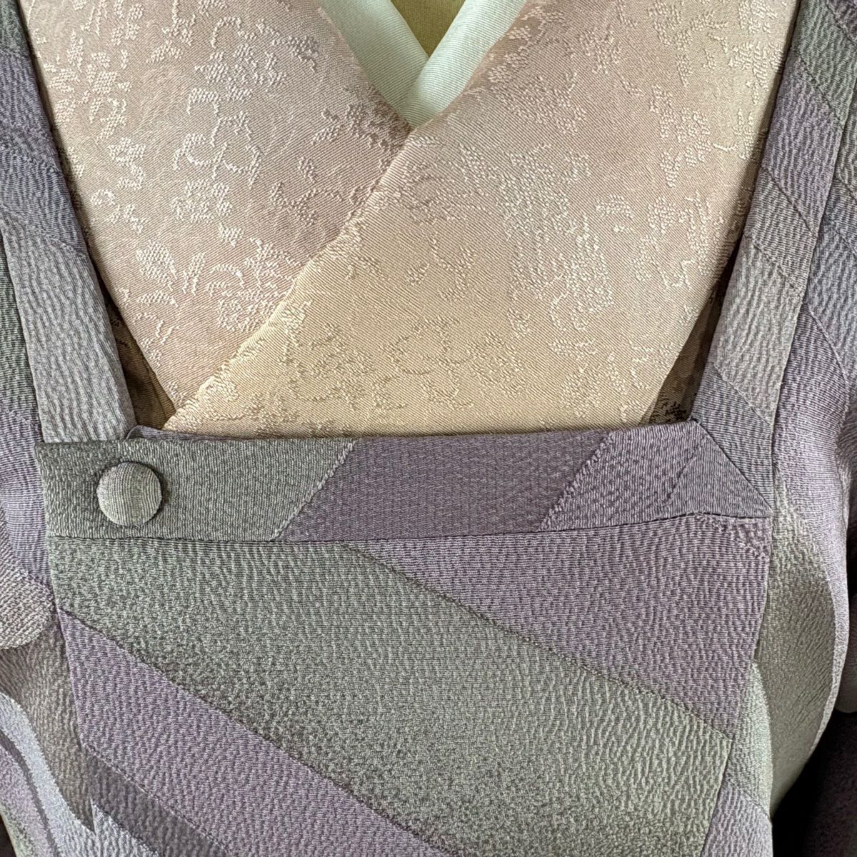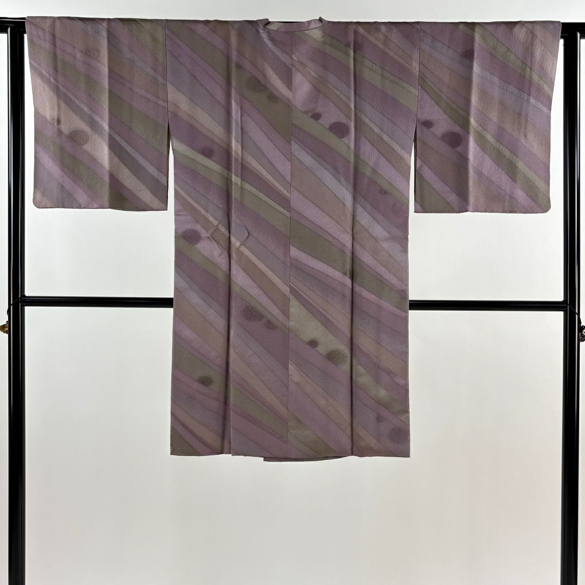 【在庫一掃】 【美品】 道中着 身丈105.5cm 裄丈61cm S 和装コート 着物衿 落款あり 斜縞 地紋 ぼかし 紫 正絹 逸品