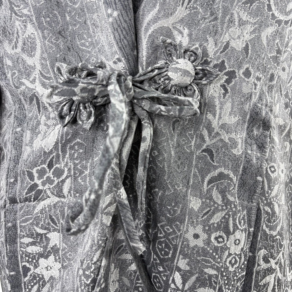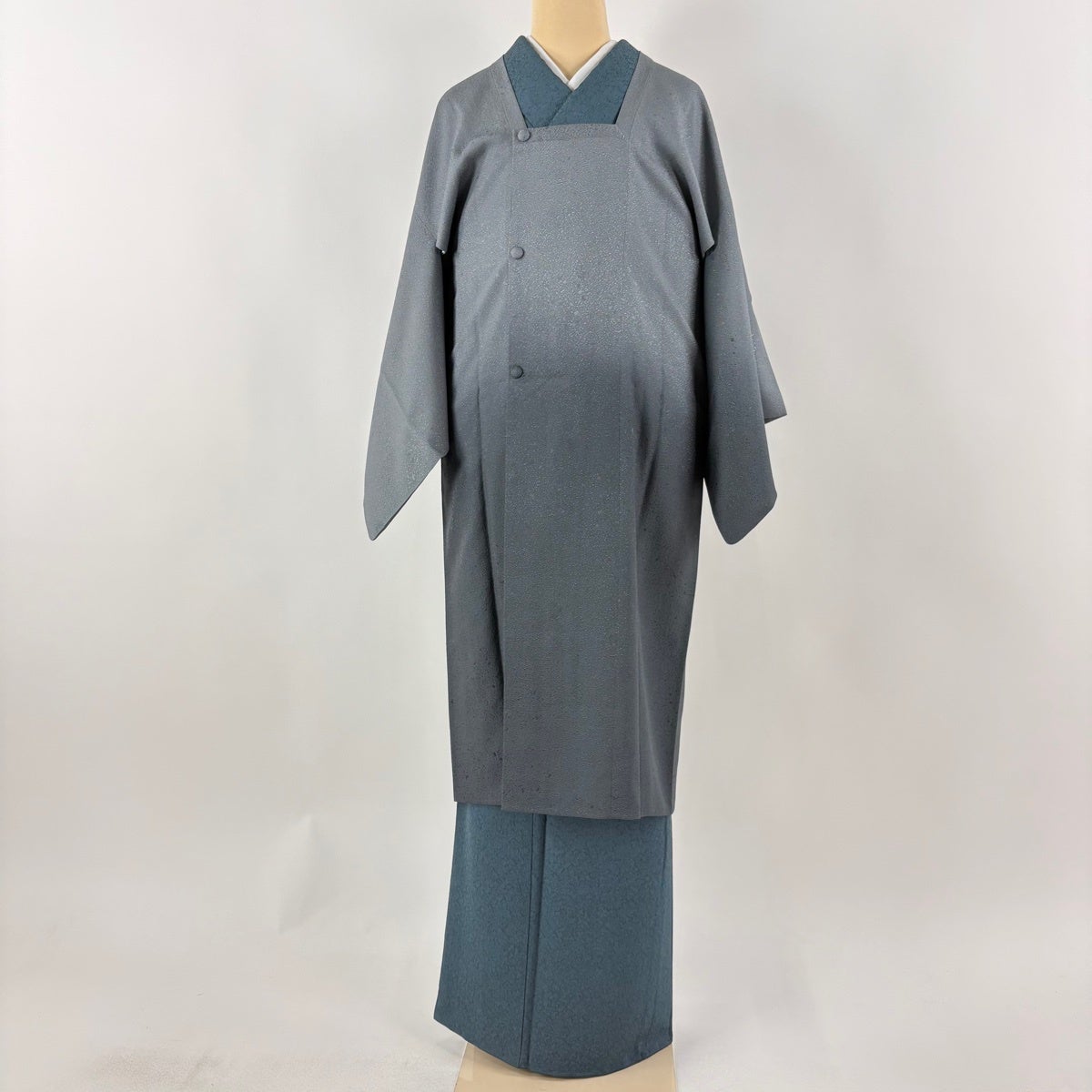 【美品】 道行 身丈87.5cm 裄丈64.5cm M 和装コート 角衿 地紋 ぼかし 灰色 正絹 秀品