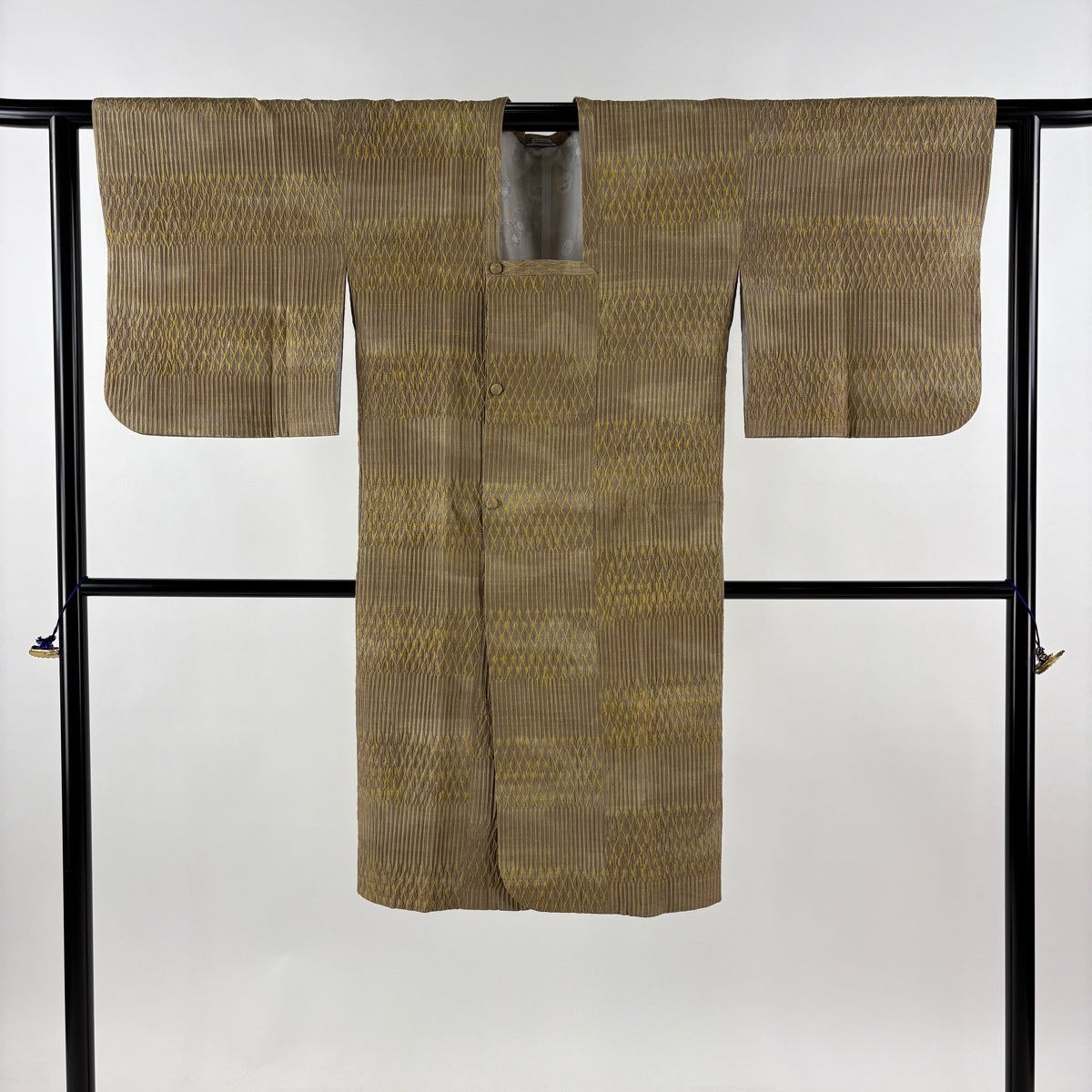 道中着 身丈86.5cm 裄丈65cm M 幾何学 絞り クリーム 正絹 秀品