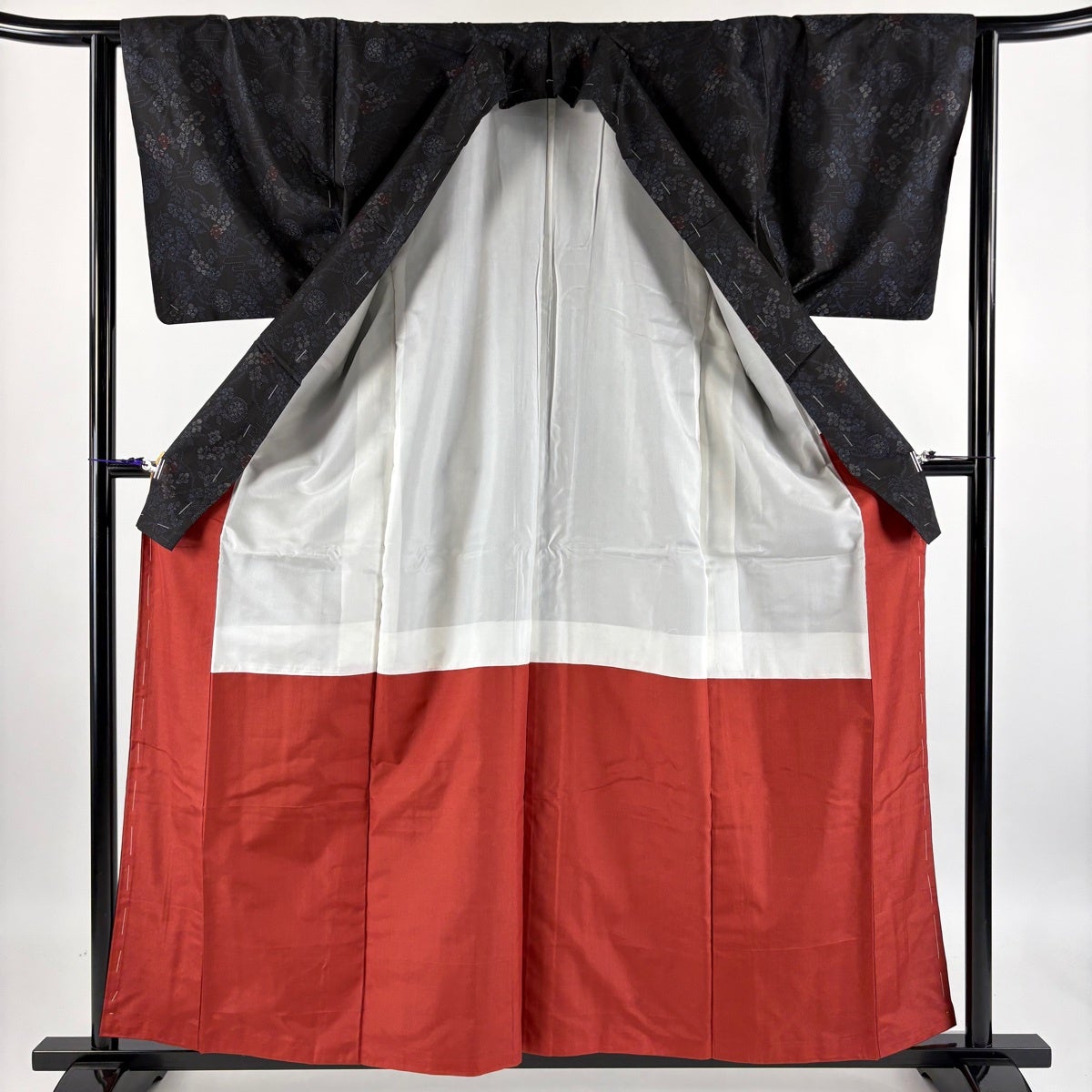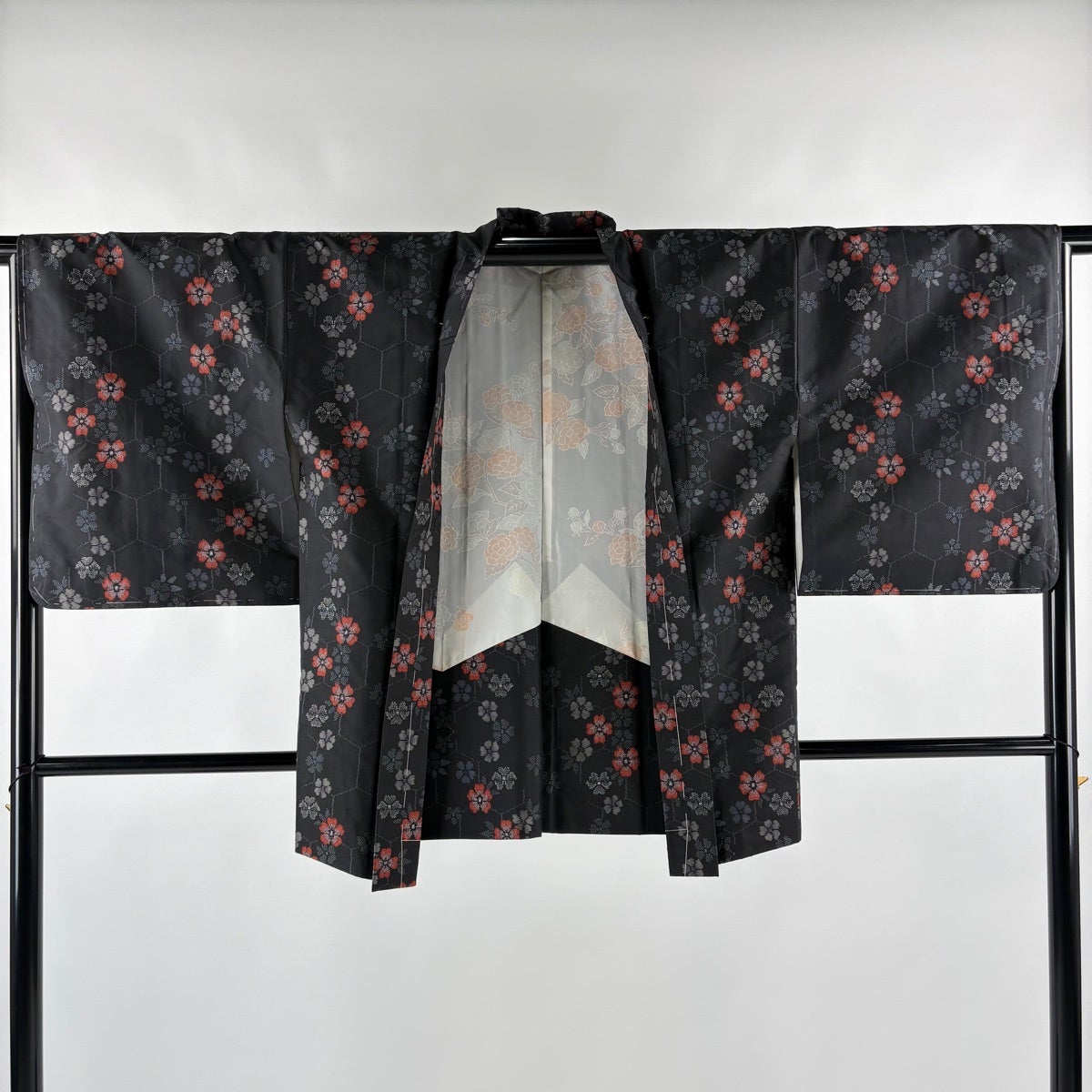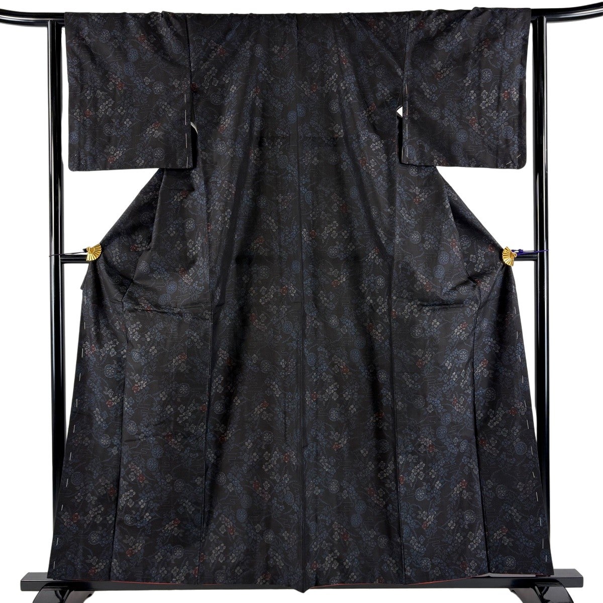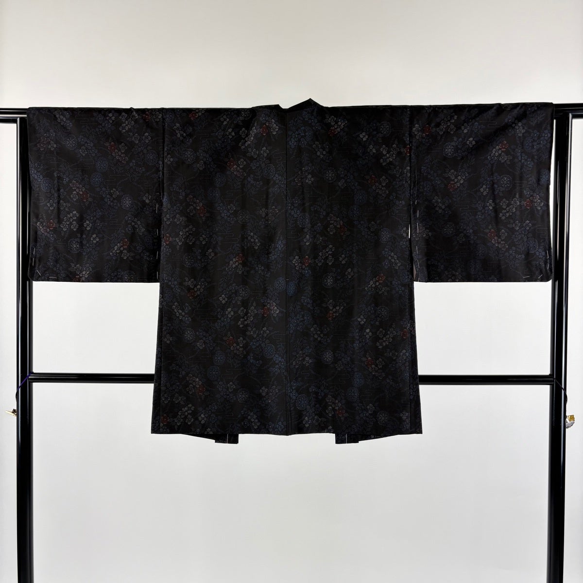 【美品】 道中着 身丈136cm 裄丈66.5cm M 和装コート 着物衿 お召地 花 墨色 正絹 逸品