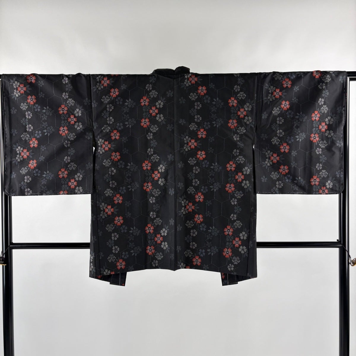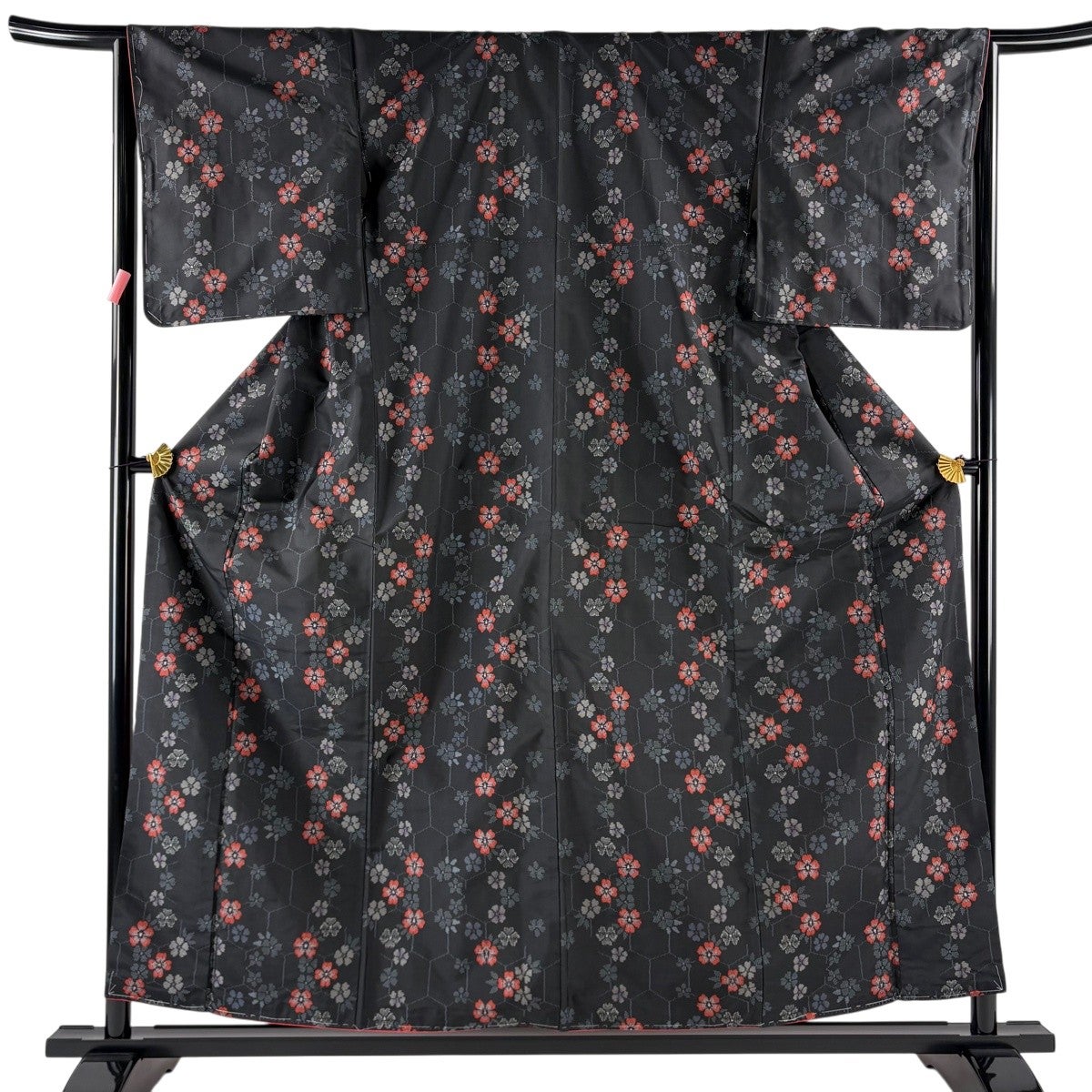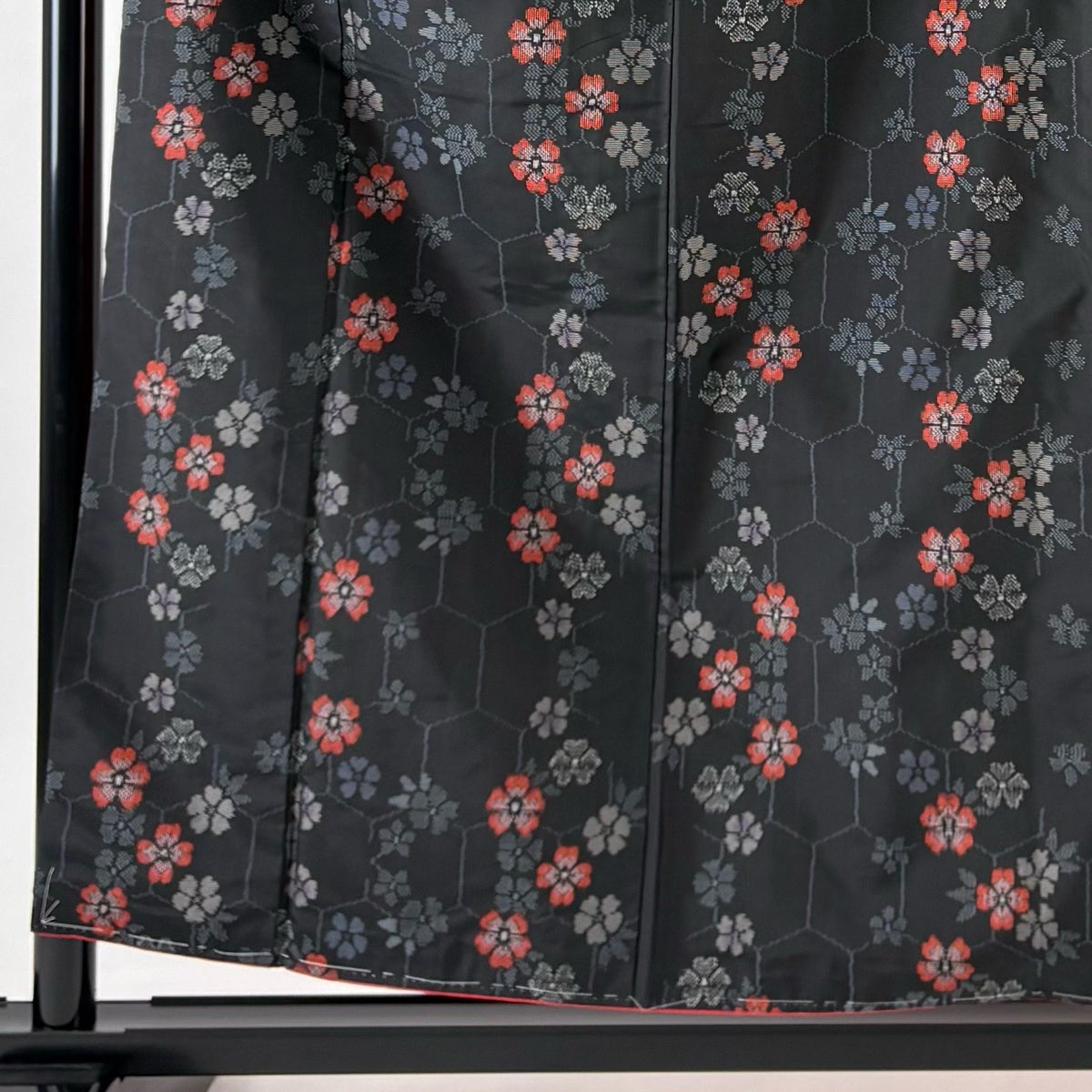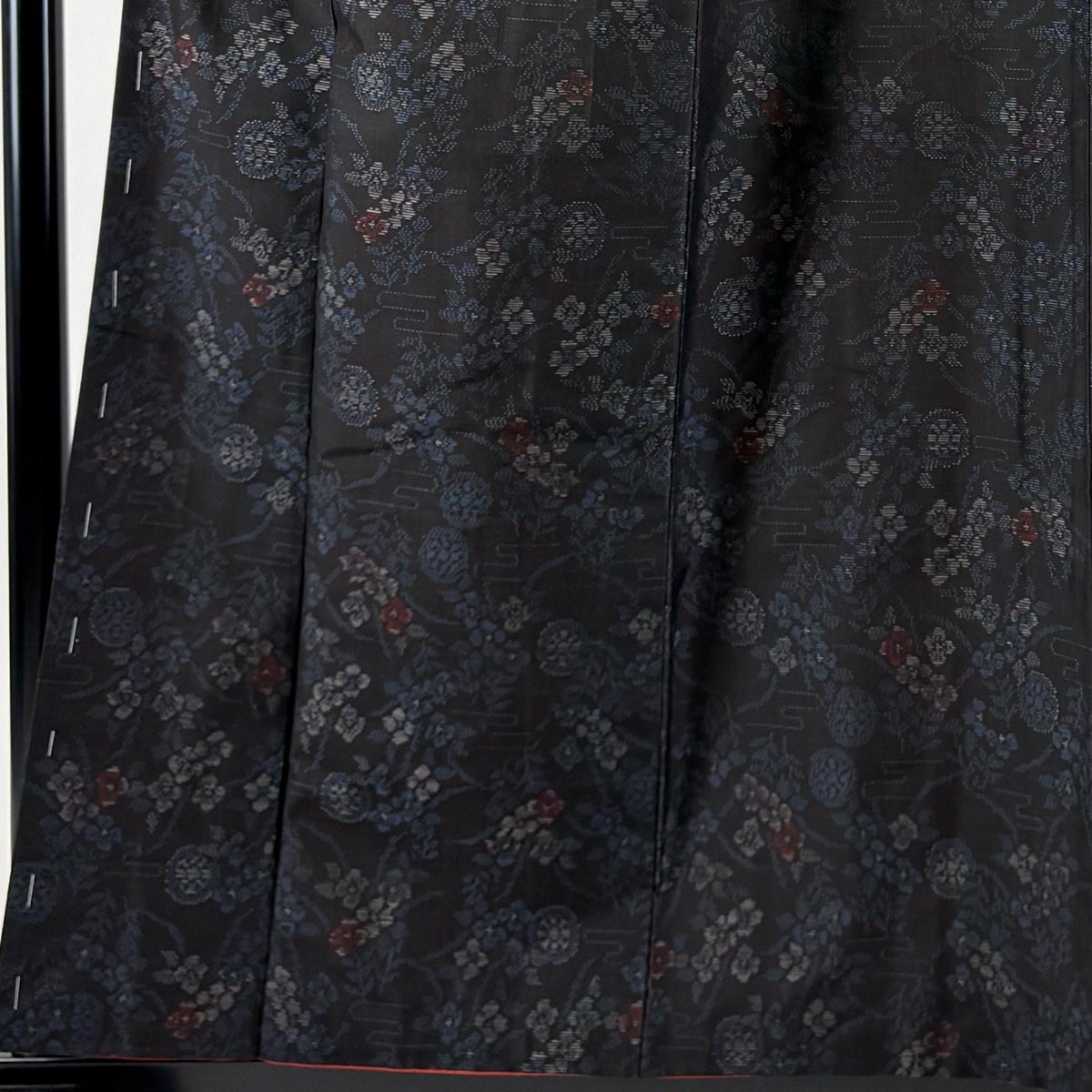 【美品】 道中着 身丈136cm 裄丈66.5cm M 和装コート 着物衿 お召地 花 墨色 正絹 逸品