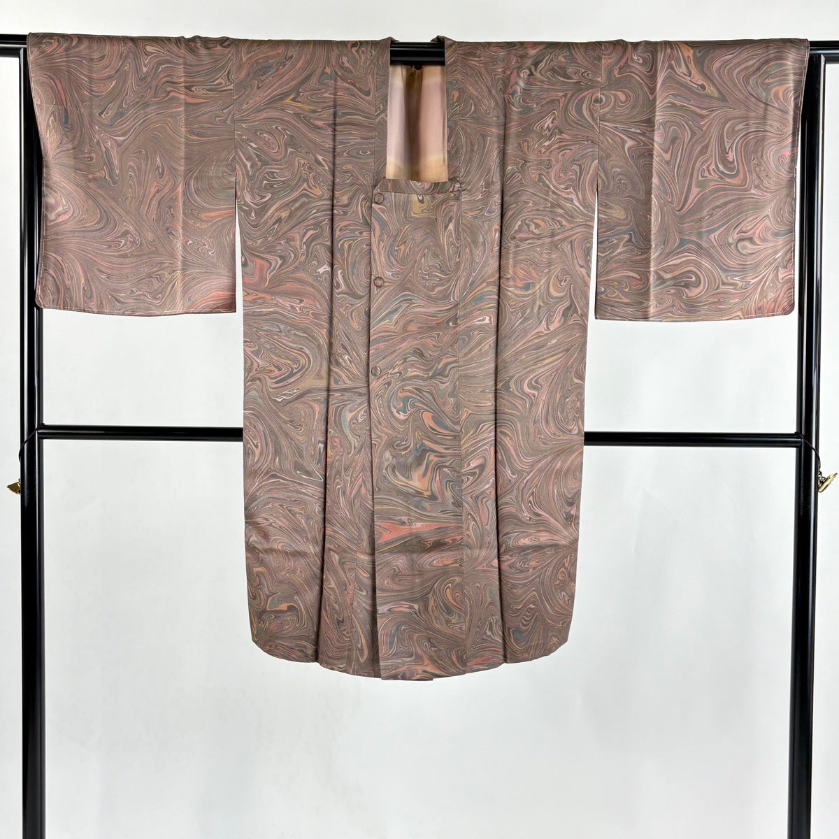 道行 身丈98cm 裄丈66.5cm M 和装コート 角衿 地紋 茶色 正絹 秀品