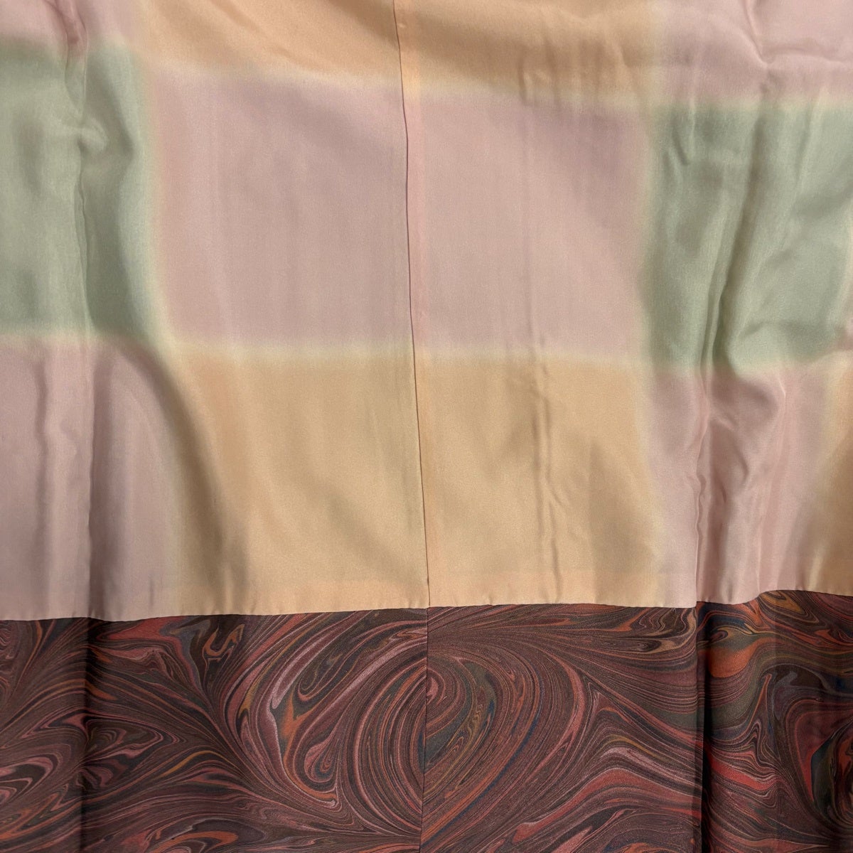 道中着 身丈100cm 裄丈64cm M 和装コート へちま衿 横縞 ぼかし 黄土色 正絹 秀品