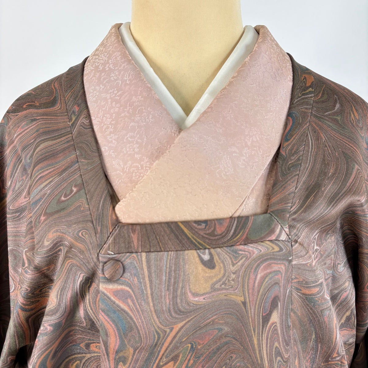 【美品】 道行 身丈98cm 裄丈63.5cm S 和装コート千代田衿 地紋 ぼかし 薄茶色 正絹 秀品