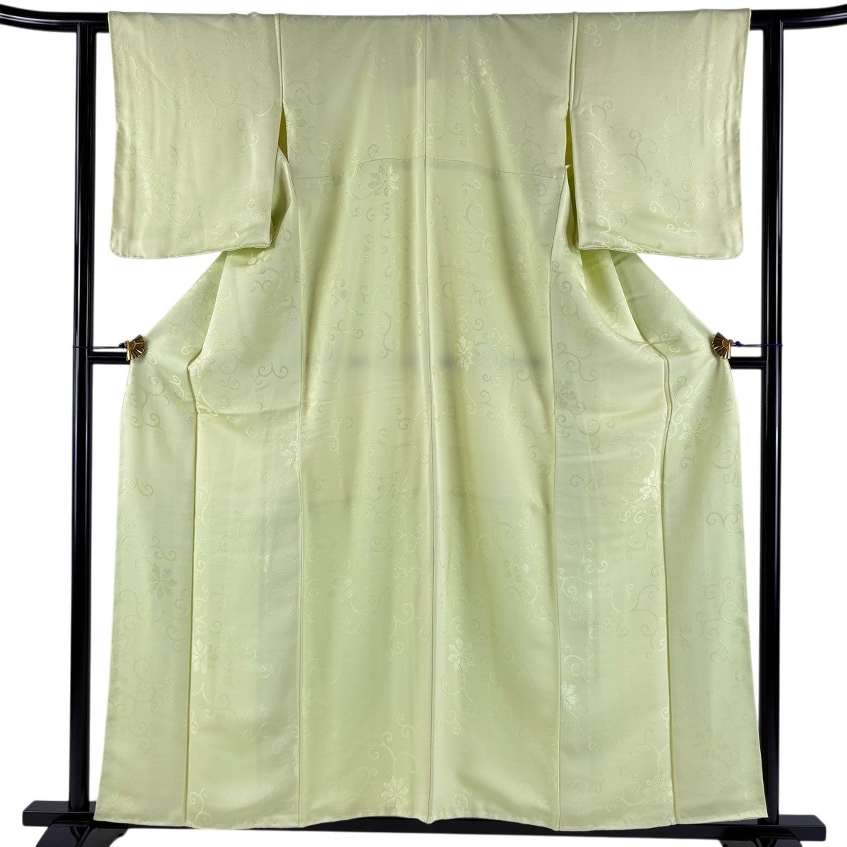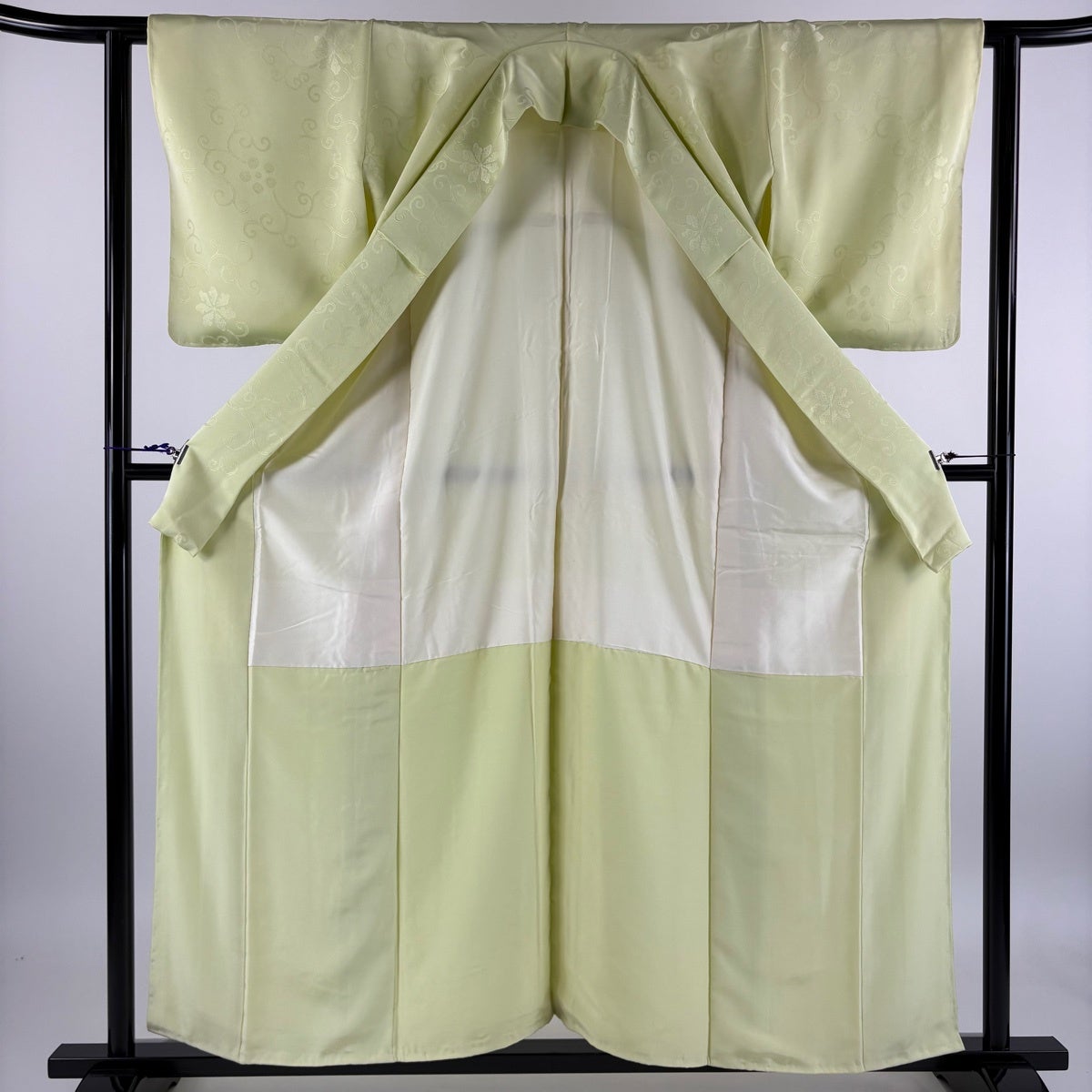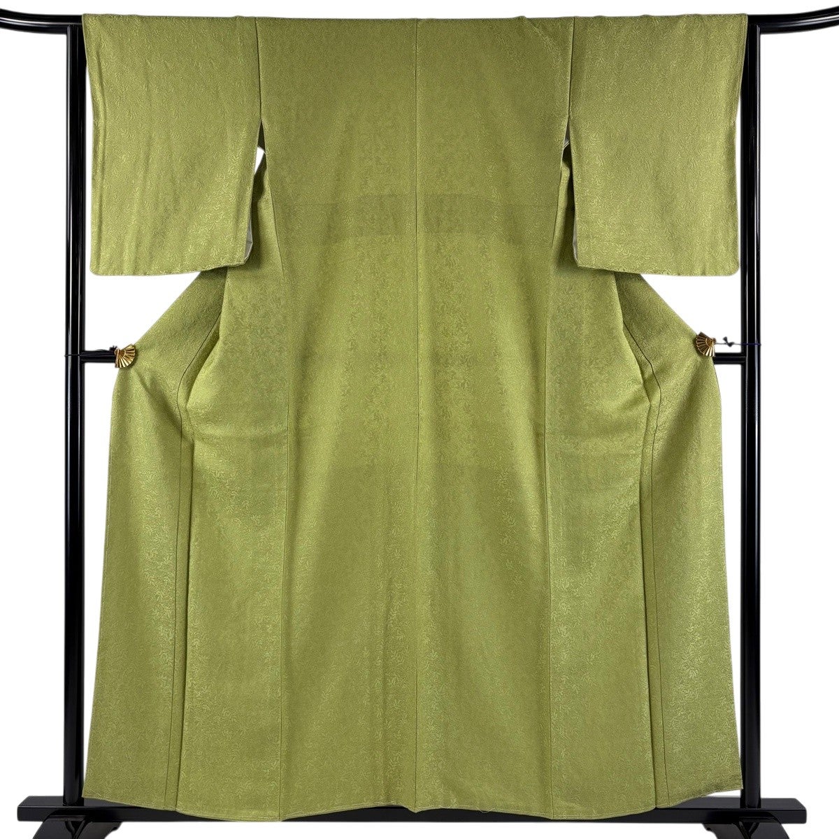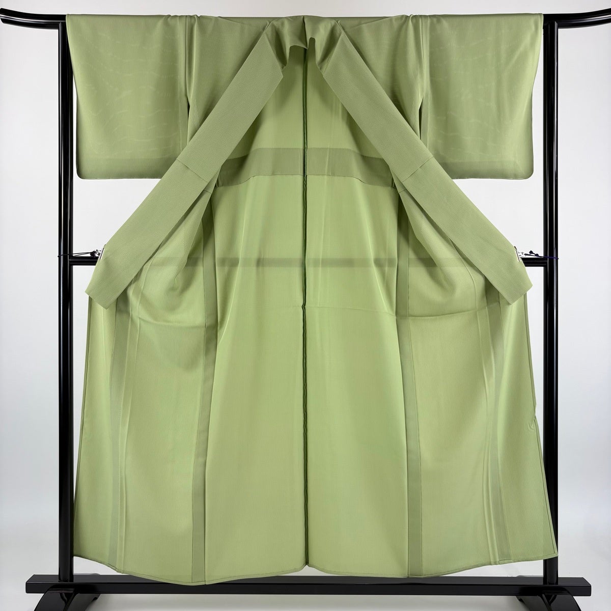 色無地 身丈157cm 裄丈61cm S 袷 地紋 薄緑 正絹 優品 一つ紋