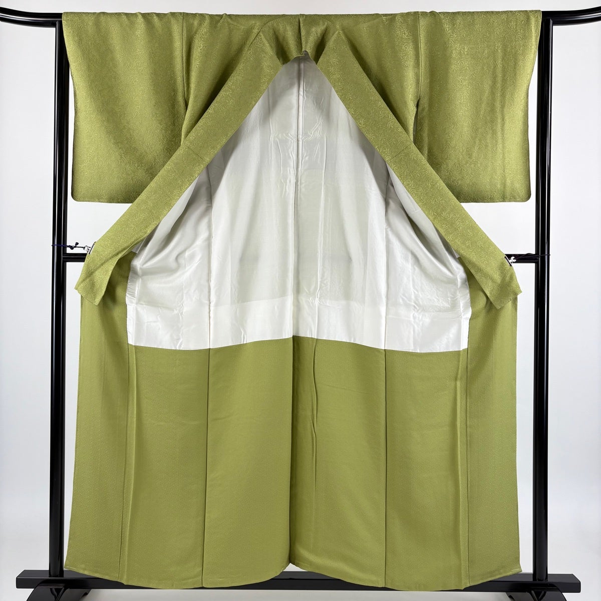 【美品】 色無地 身丈156.5cm 裄丈64.5cm M 袷 地紋 抹茶色 正絹 秀品