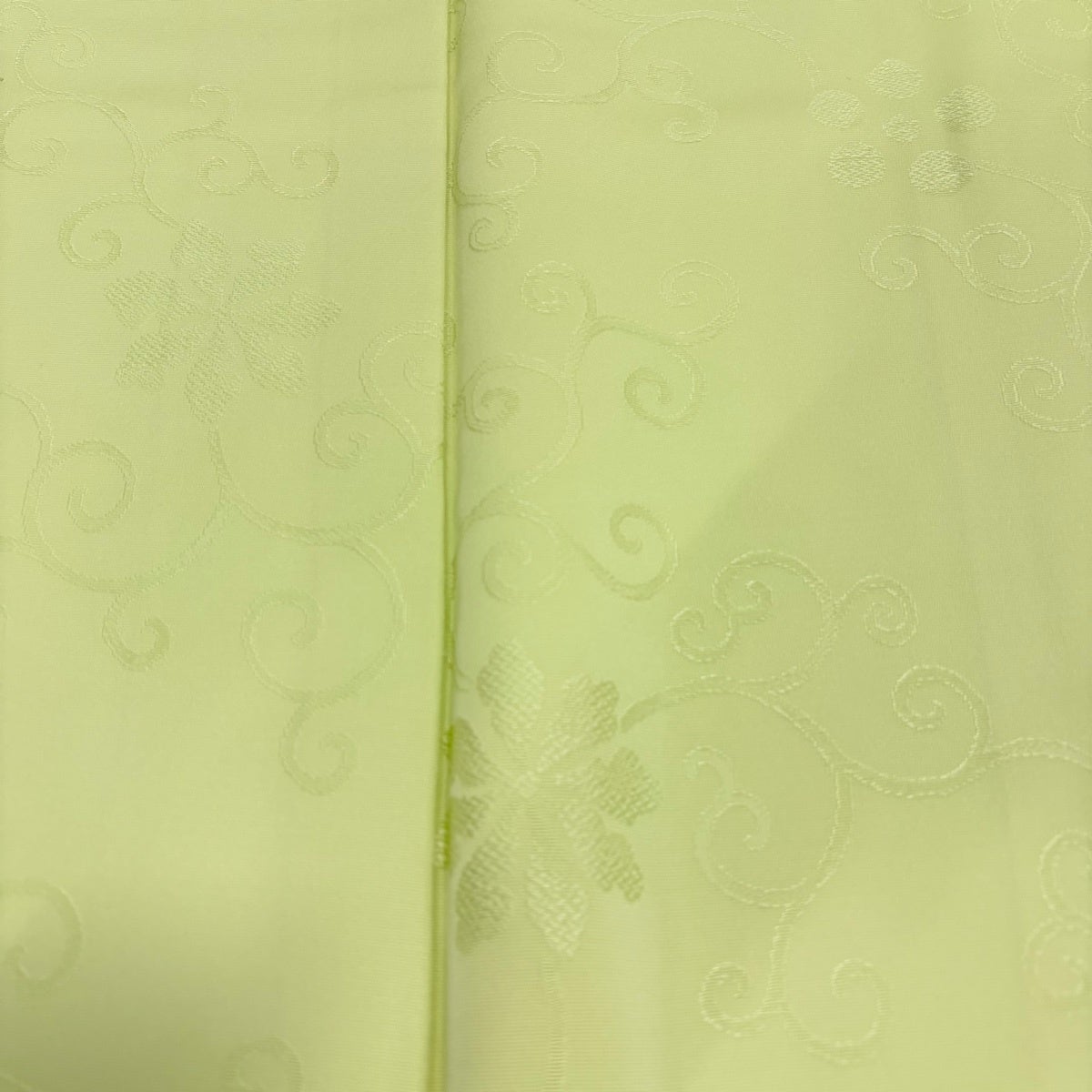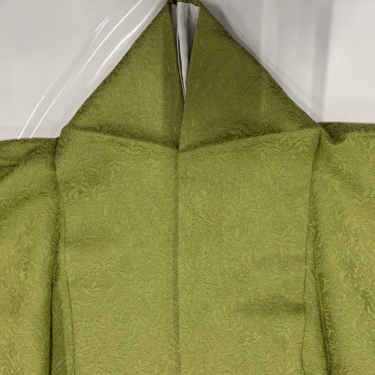 色無地 身丈160.5cm 裄丈65cm M 袷 地紋 薄緑 正絹 優品 一つ紋