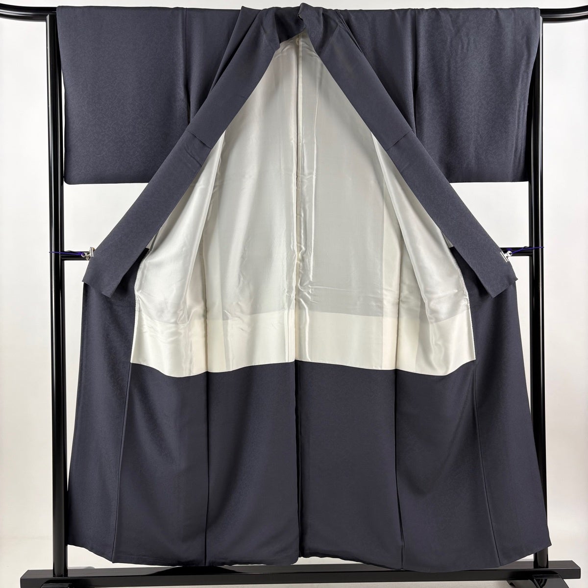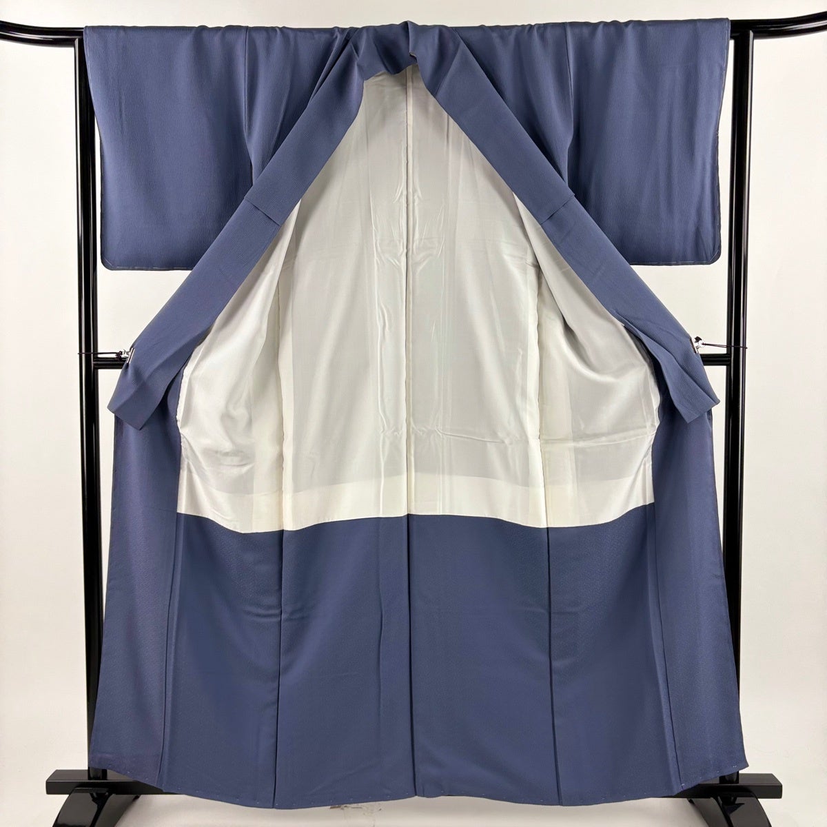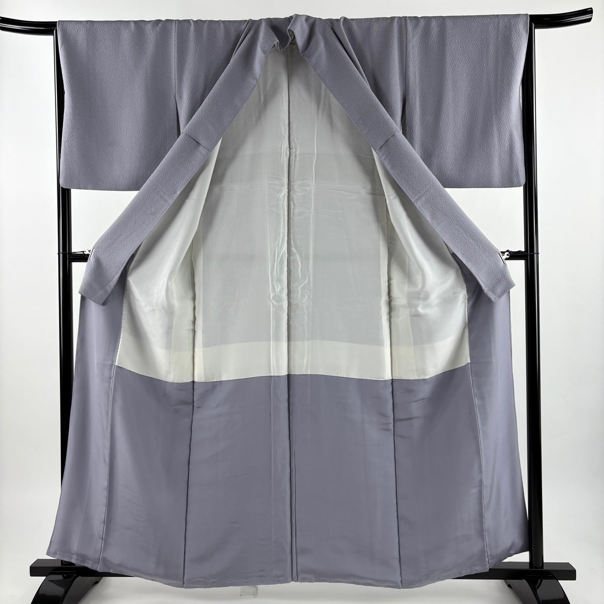 色無地 身丈159.5cm 裄丈63.5cm S 袷 地紋 青紫 正絹 秀品