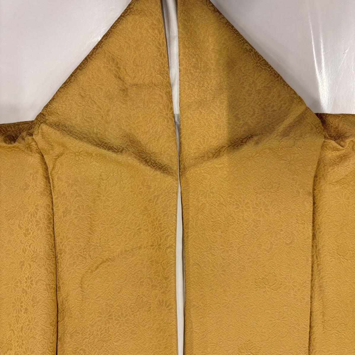 【美品】 色無地 身丈167.5cm 裄丈65cm M 袷 地紋 黄土色 正絹 優品