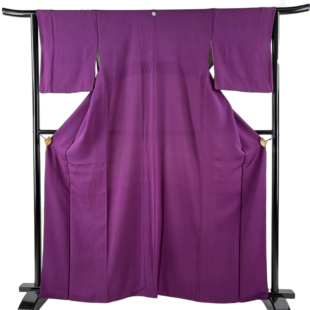 色無地 身丈161cm 裄丈64cm M 袷 地紋 紫 正絹 優品 一つ紋