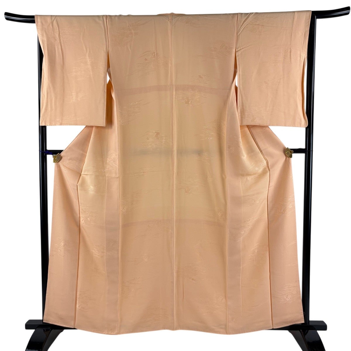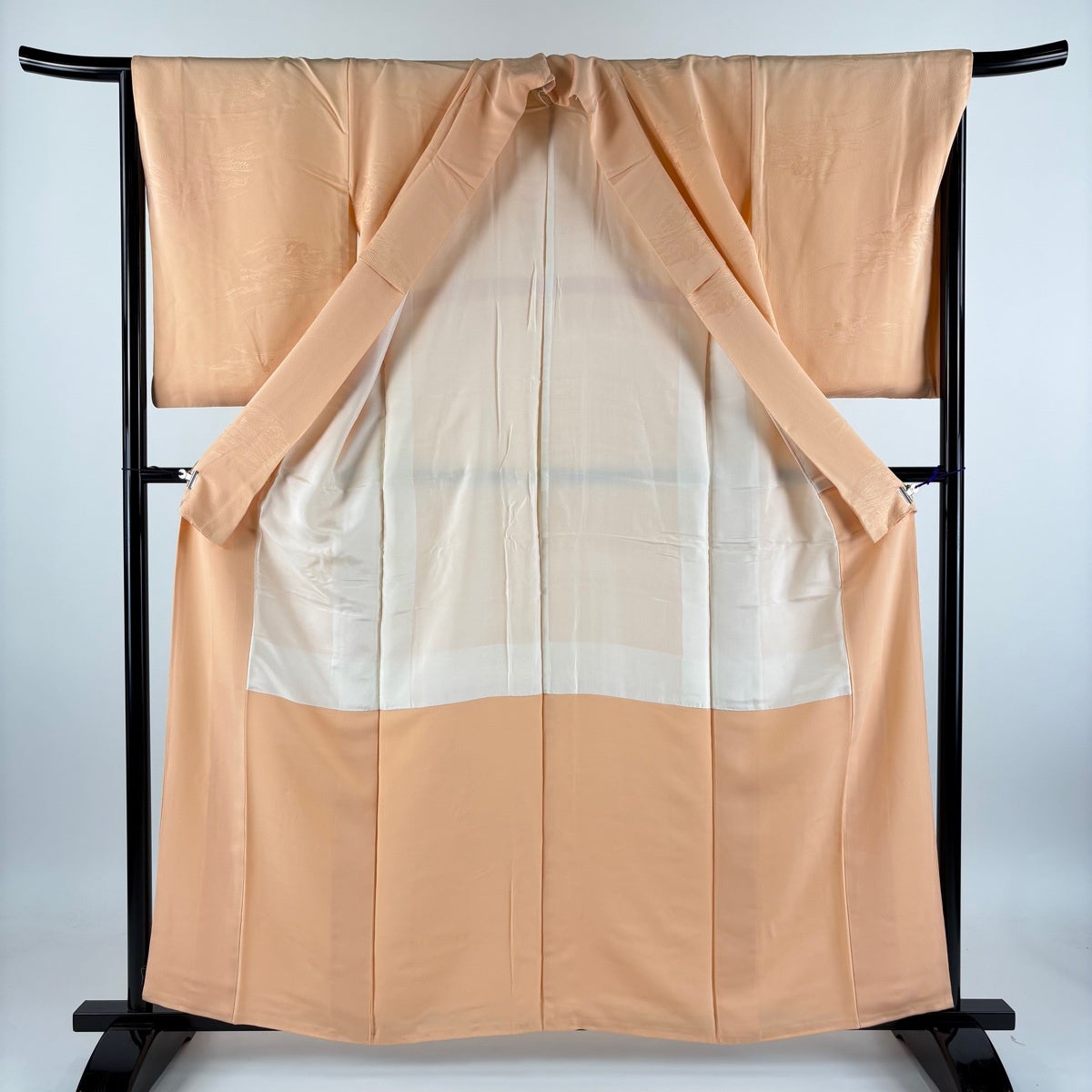 色無地 身丈158.5cm 裄丈66cm M 袷 地紋 薄オレンジ 正絹 優品