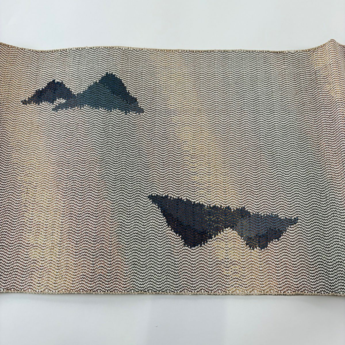 【美品】 袋帯 秀品 落款あり 風景 霞 箔 ぼかし ベージュ お太鼓柄 正絹