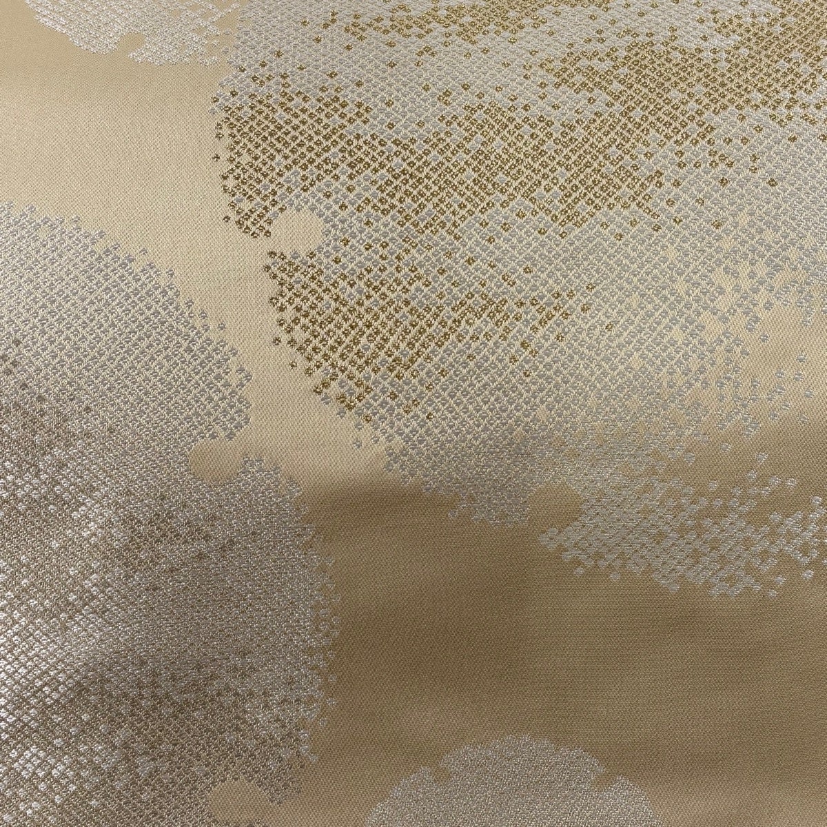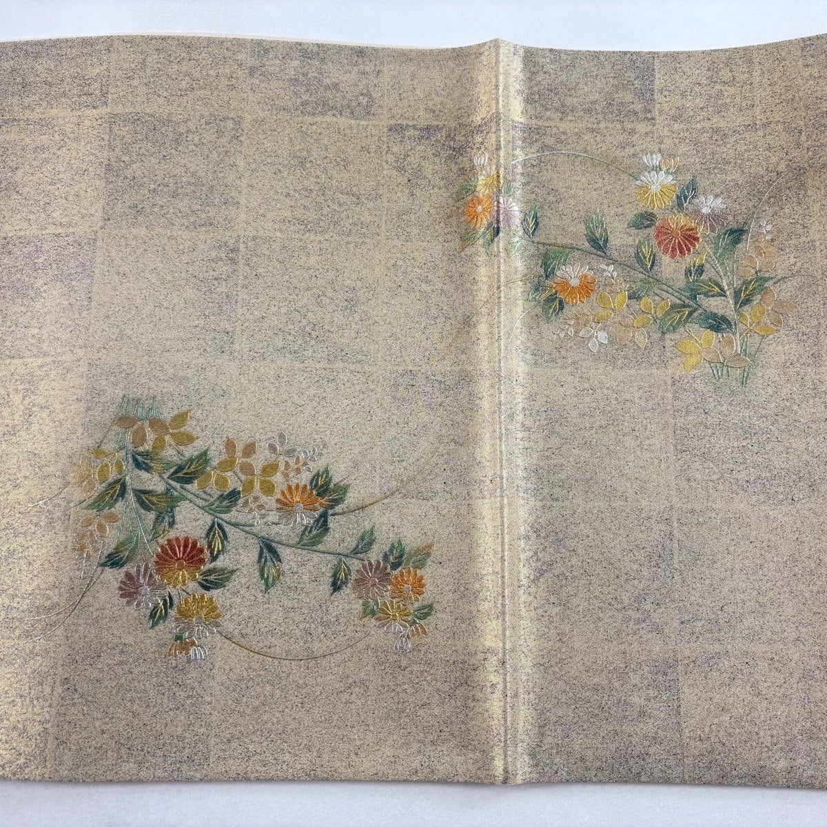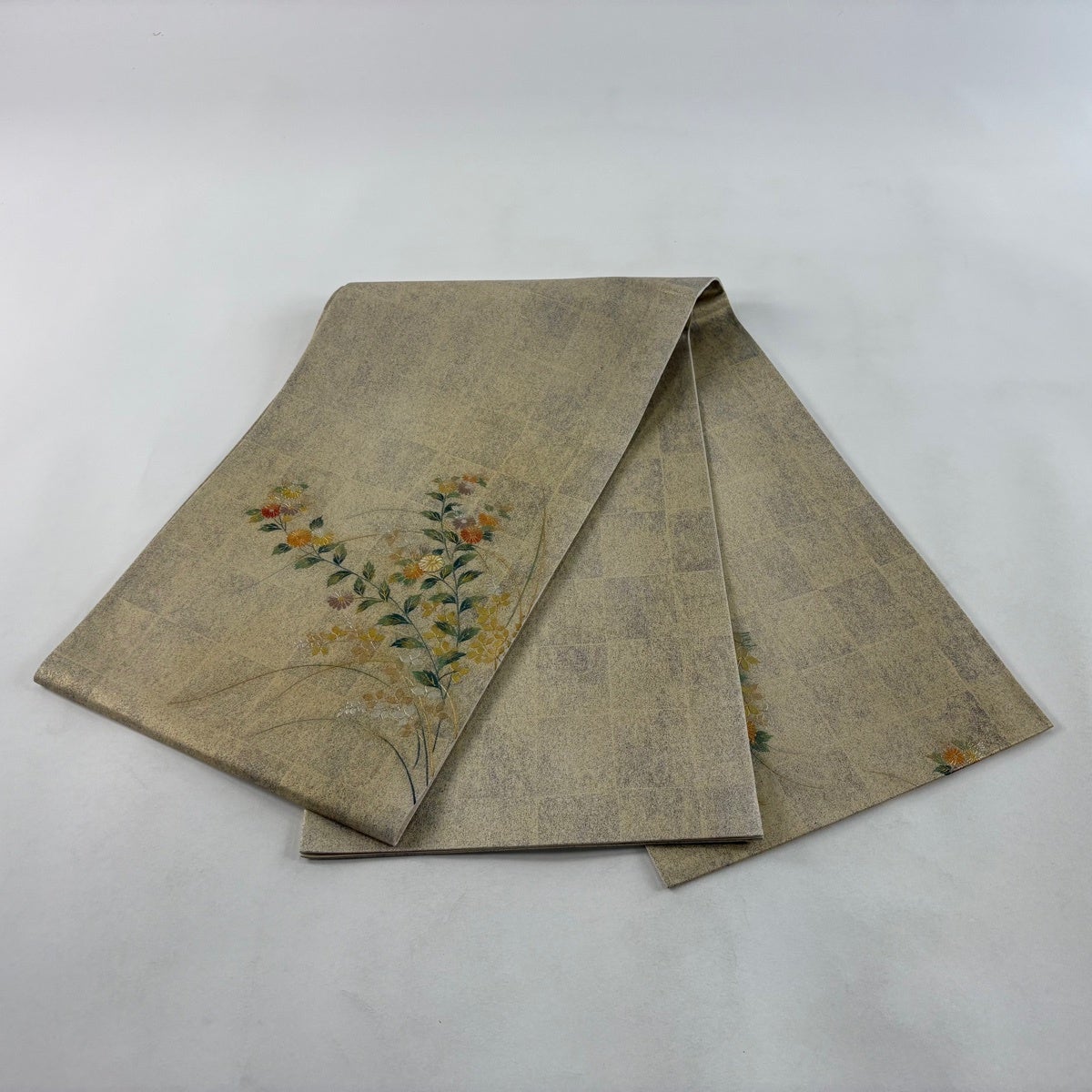 【美品】 袋帯 秀品 草花 格子 螺鈿 金銀彩 金色 お太鼓柄 正絹