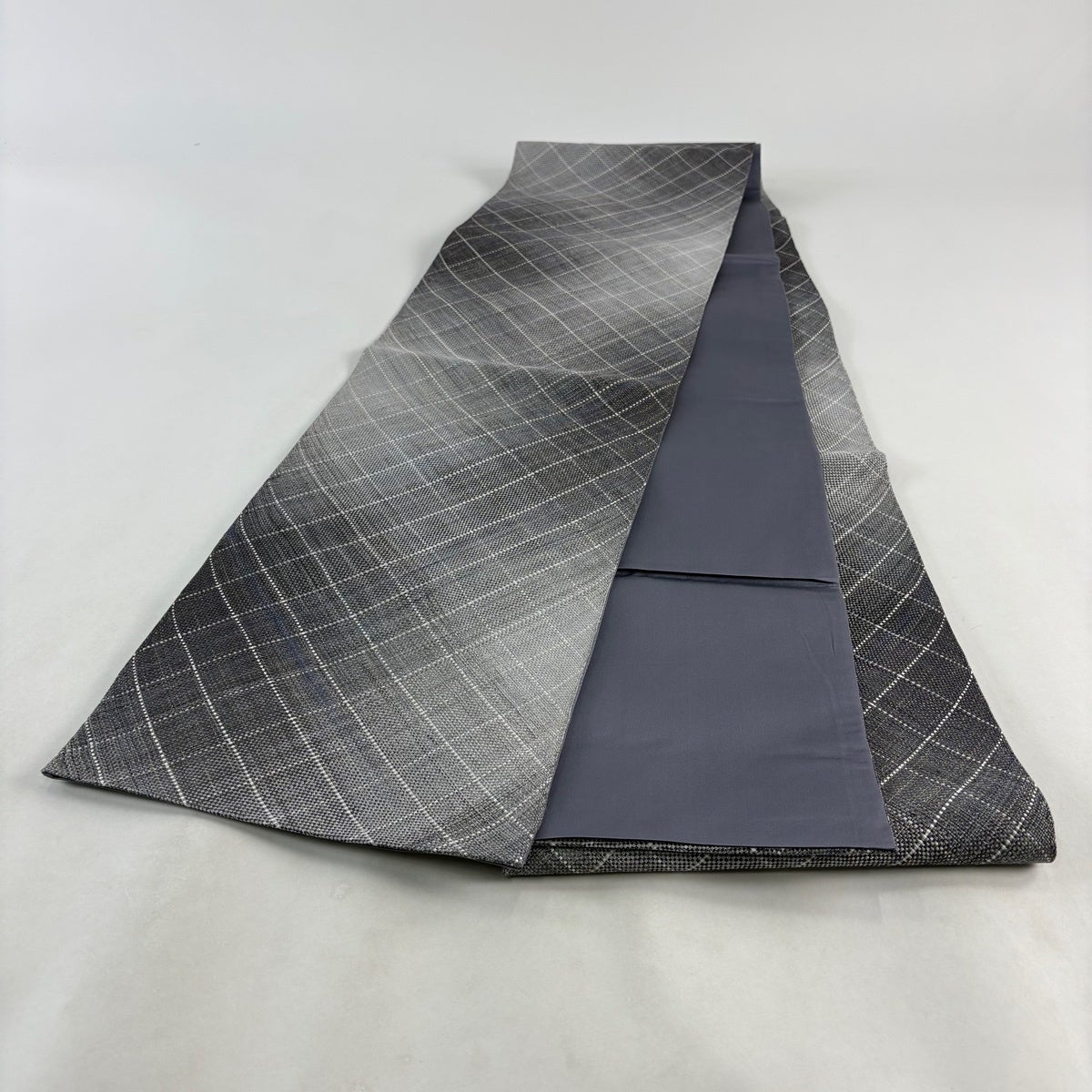 【美品】 袋帯 秀品 斜め格子 金通し 灰紫 全通 正絹