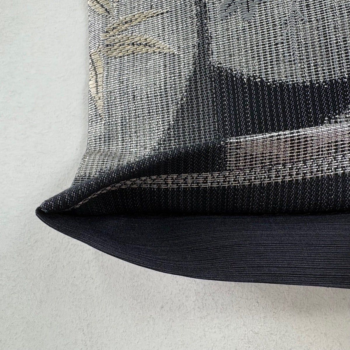 【美品】 袋帯 秀品 手もみ引箔 幾何学模様 金銀彩 銀通し 墨色 六通 正絹