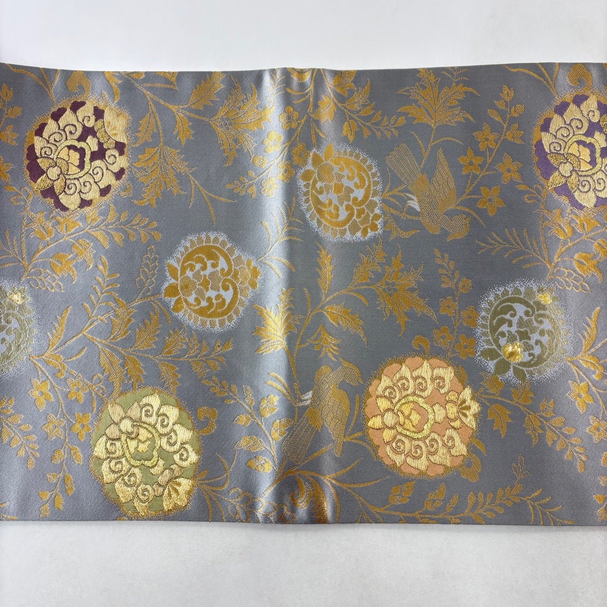【美品】 袋帯 秀品 花菱 献上鳥唐草文 金糸 灰茶 六通 正絹
