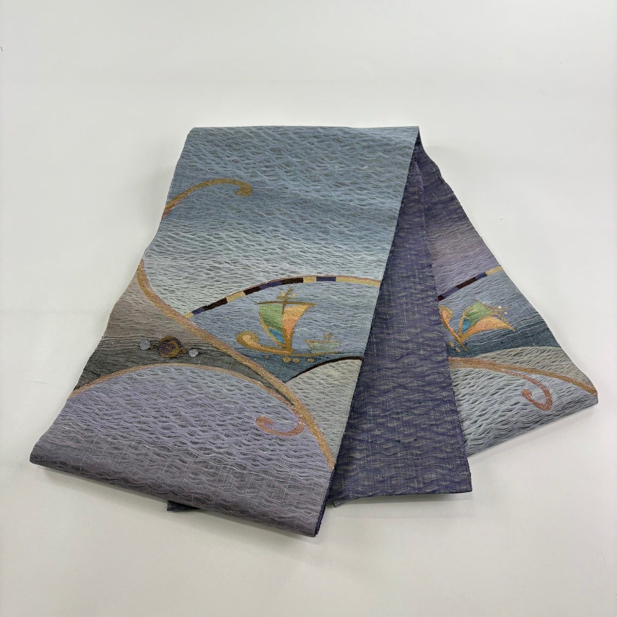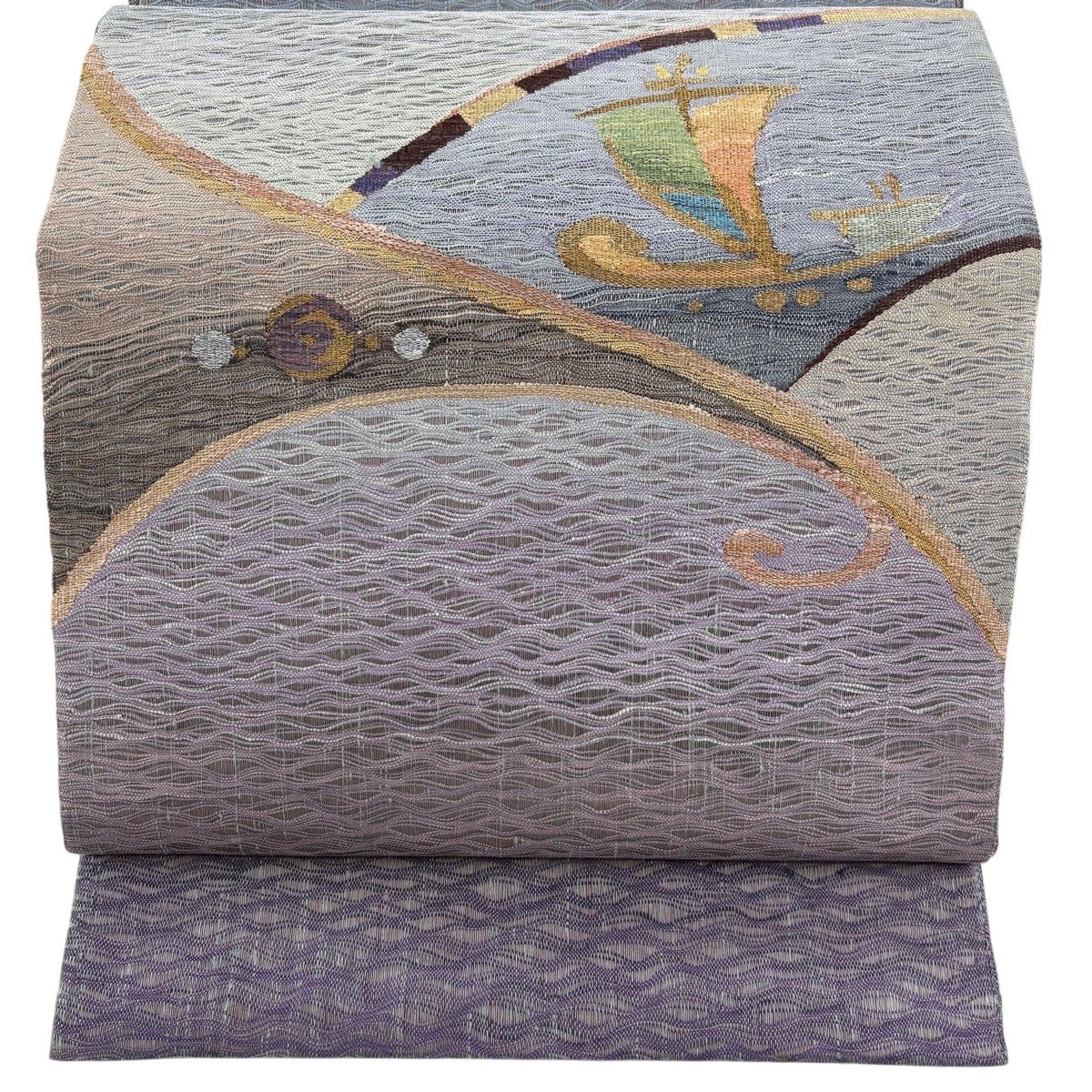 【美品】 袋帯 秀品 船 金糸 箔 金色 お太鼓柄 正絹