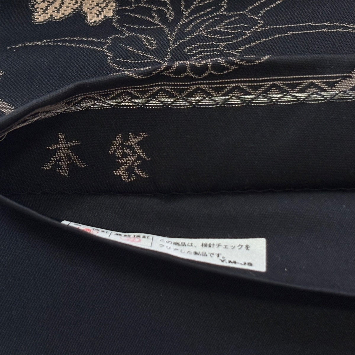 【美品】 袋帯 秀品 花うさぎ 楓 箔 黒 六通 正絹