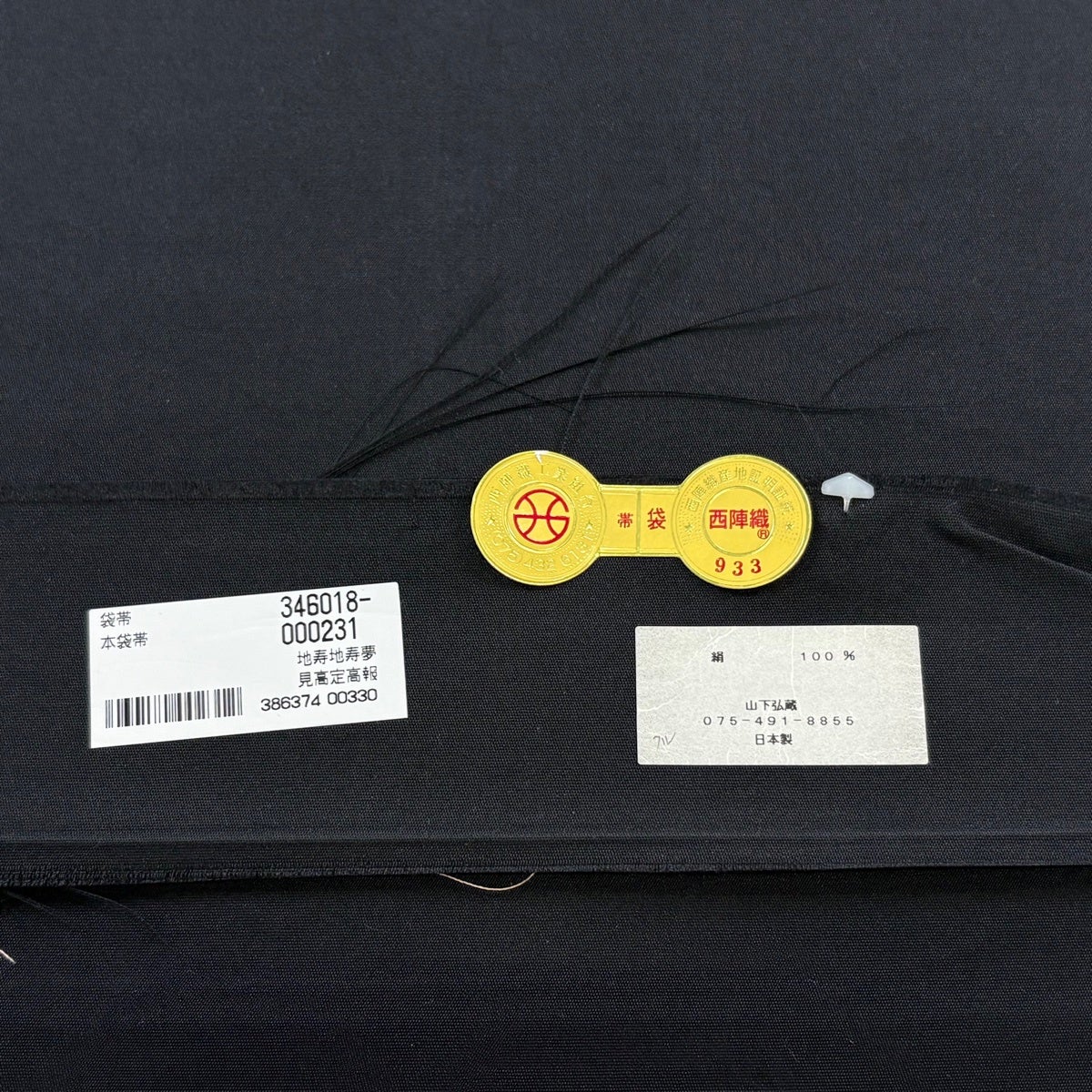 【美品】 袋帯 秀品 縦ぼかし 銀糸 黒灰 全通 正絹