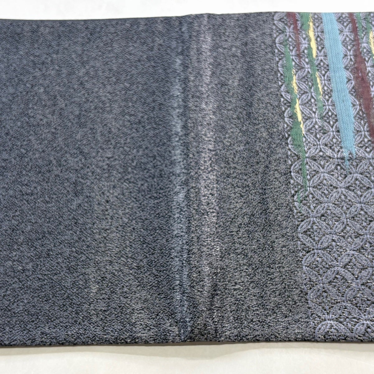 【美品】 袋帯 秀品 幾何学 金銀糸 灰色 お太鼓柄 正絹