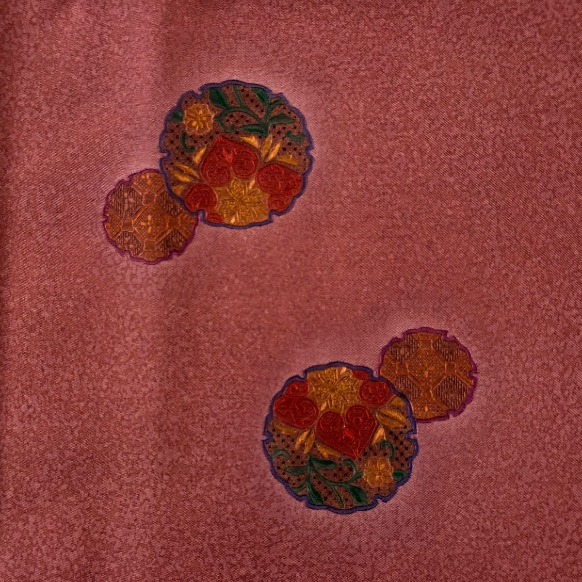 【美品】 袋帯 秀品 花蝶 尾長鶏 金糸 箔 サーモンピンク 六通 正絹