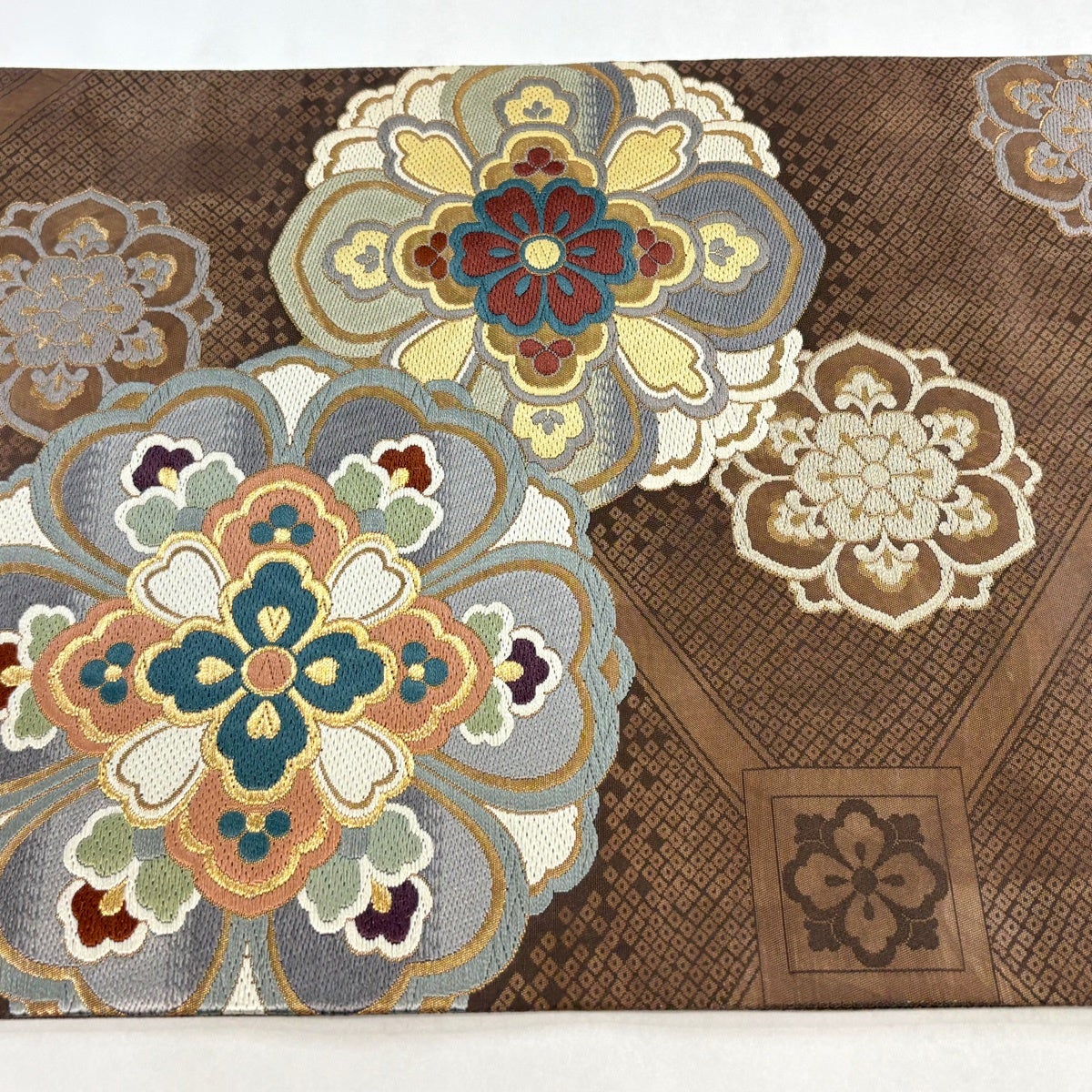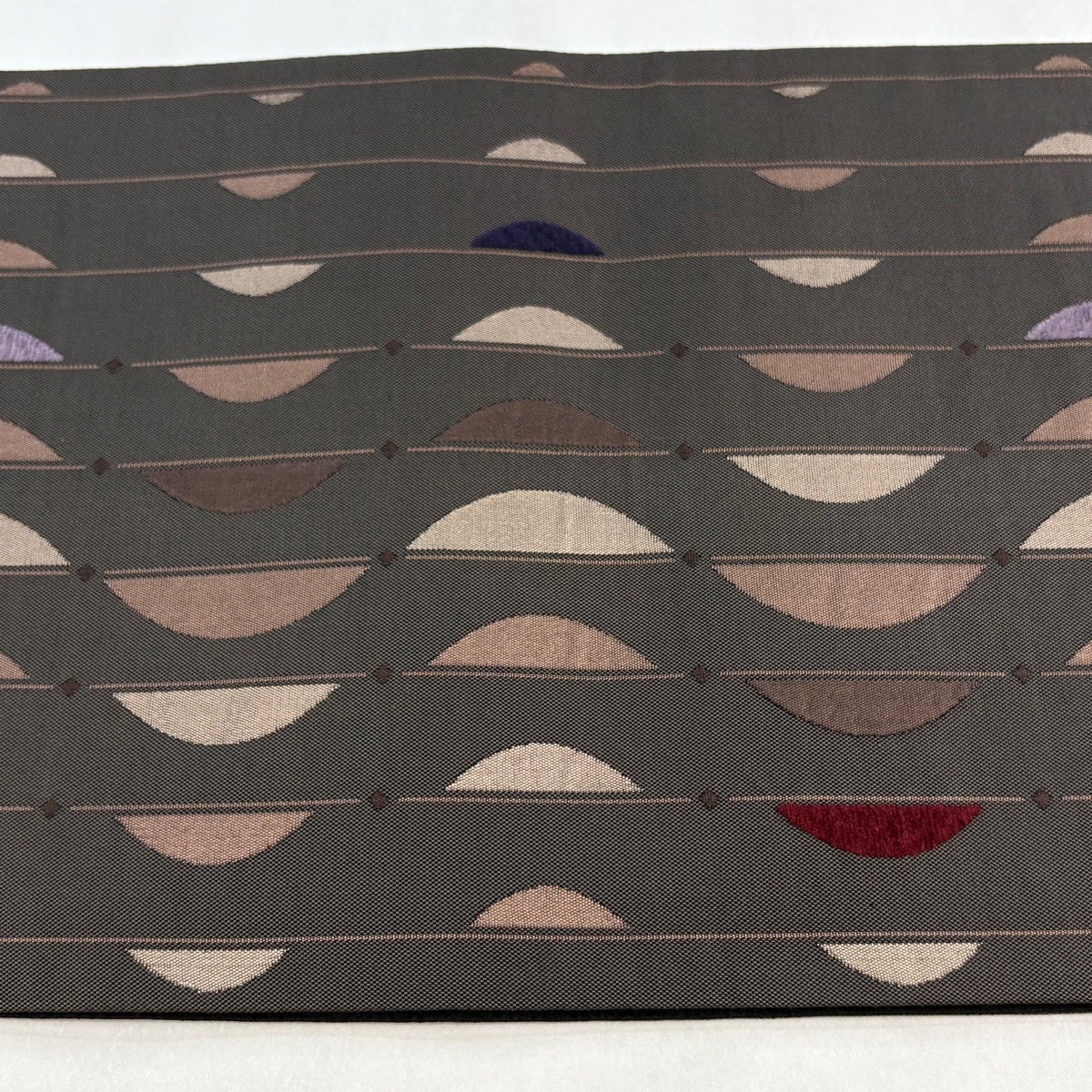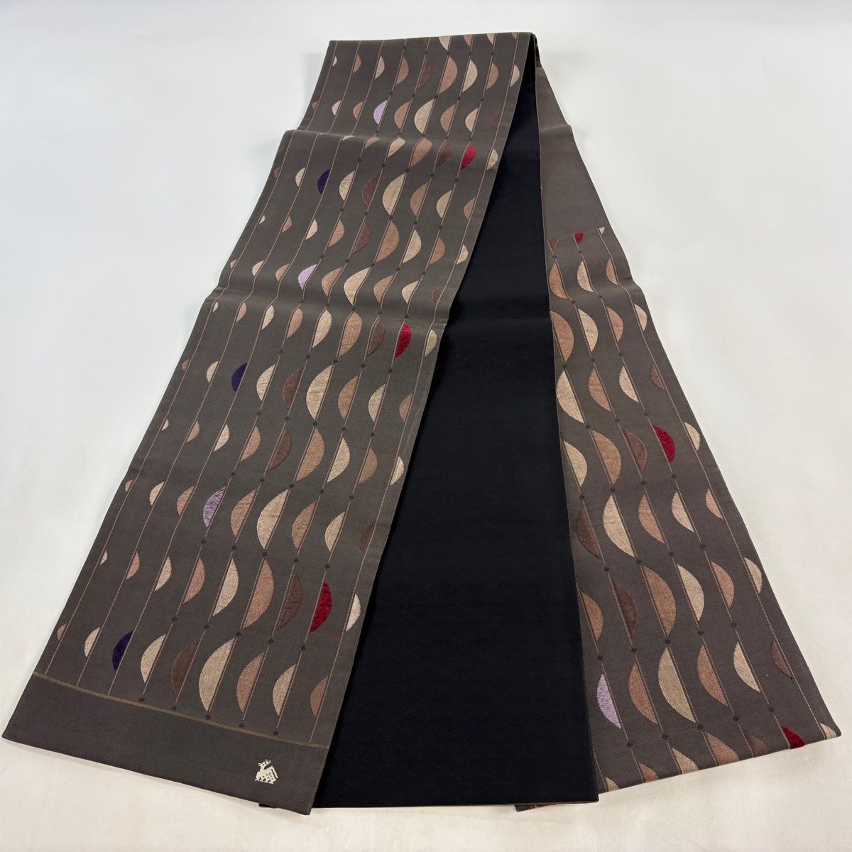 【美品】 袋帯 秀品 幾何学 ビロード風 焦茶色 六通 正絹