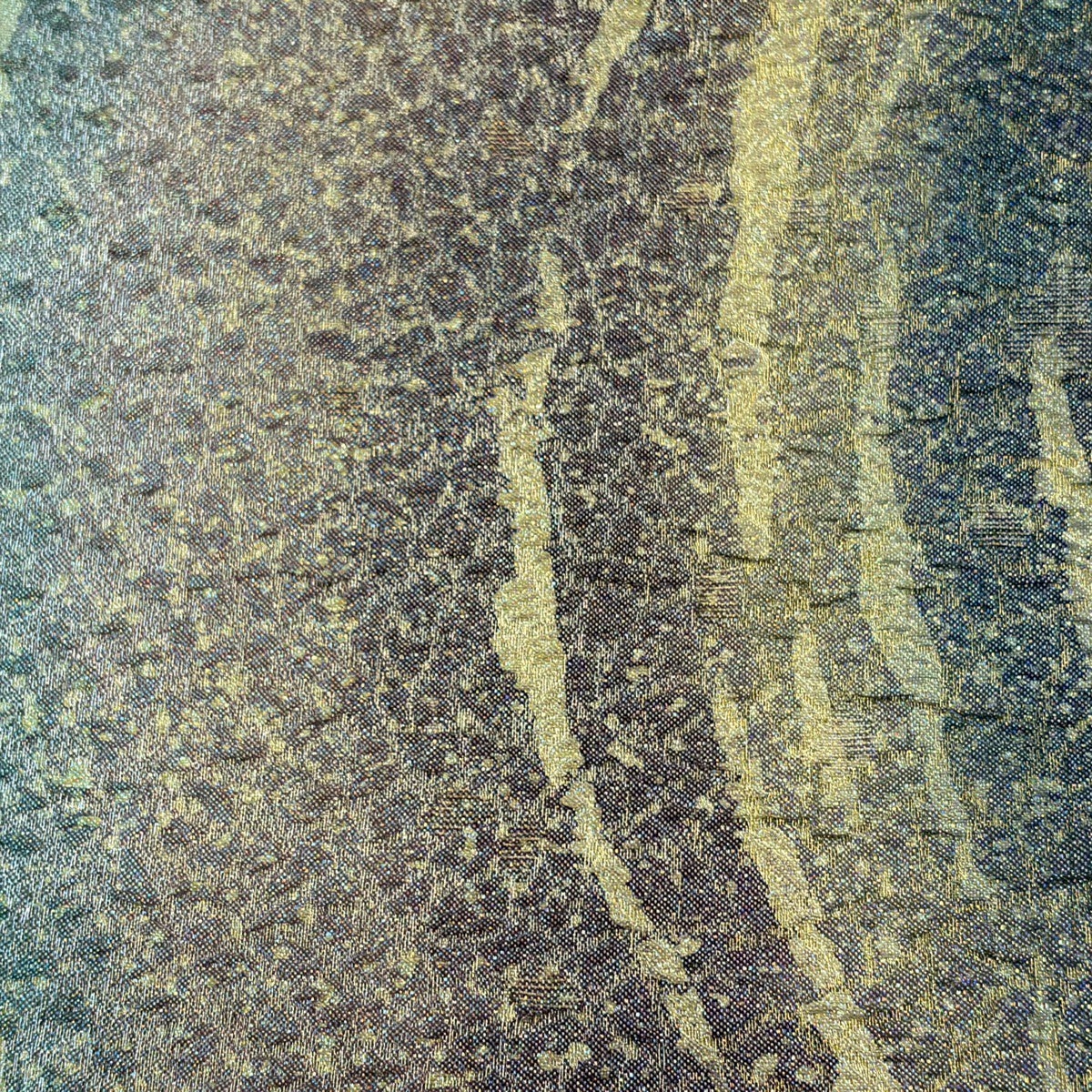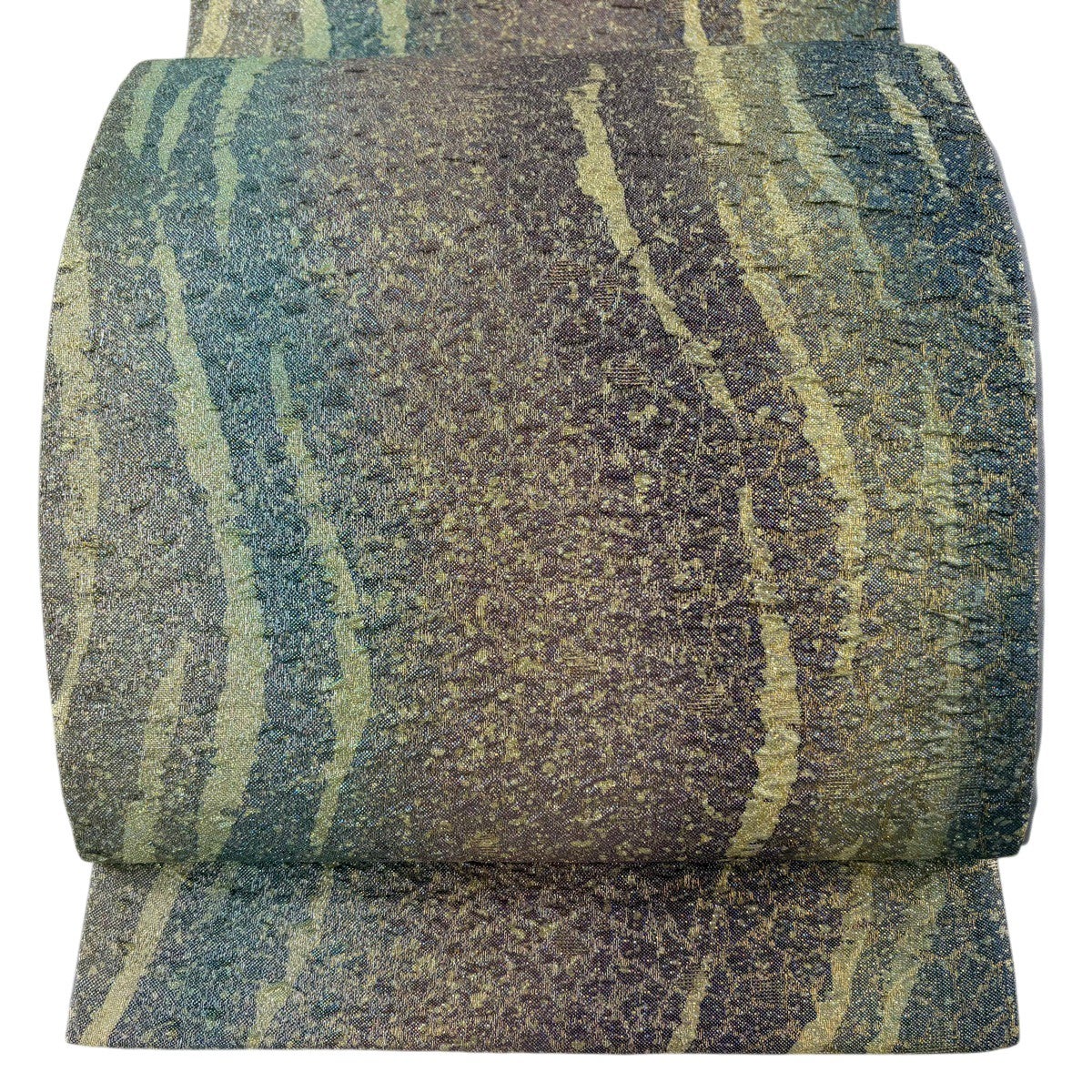 【美品】 袋帯 秀品 紬地 幾何学模様 金彩 絞り 深緑 六通 正絹