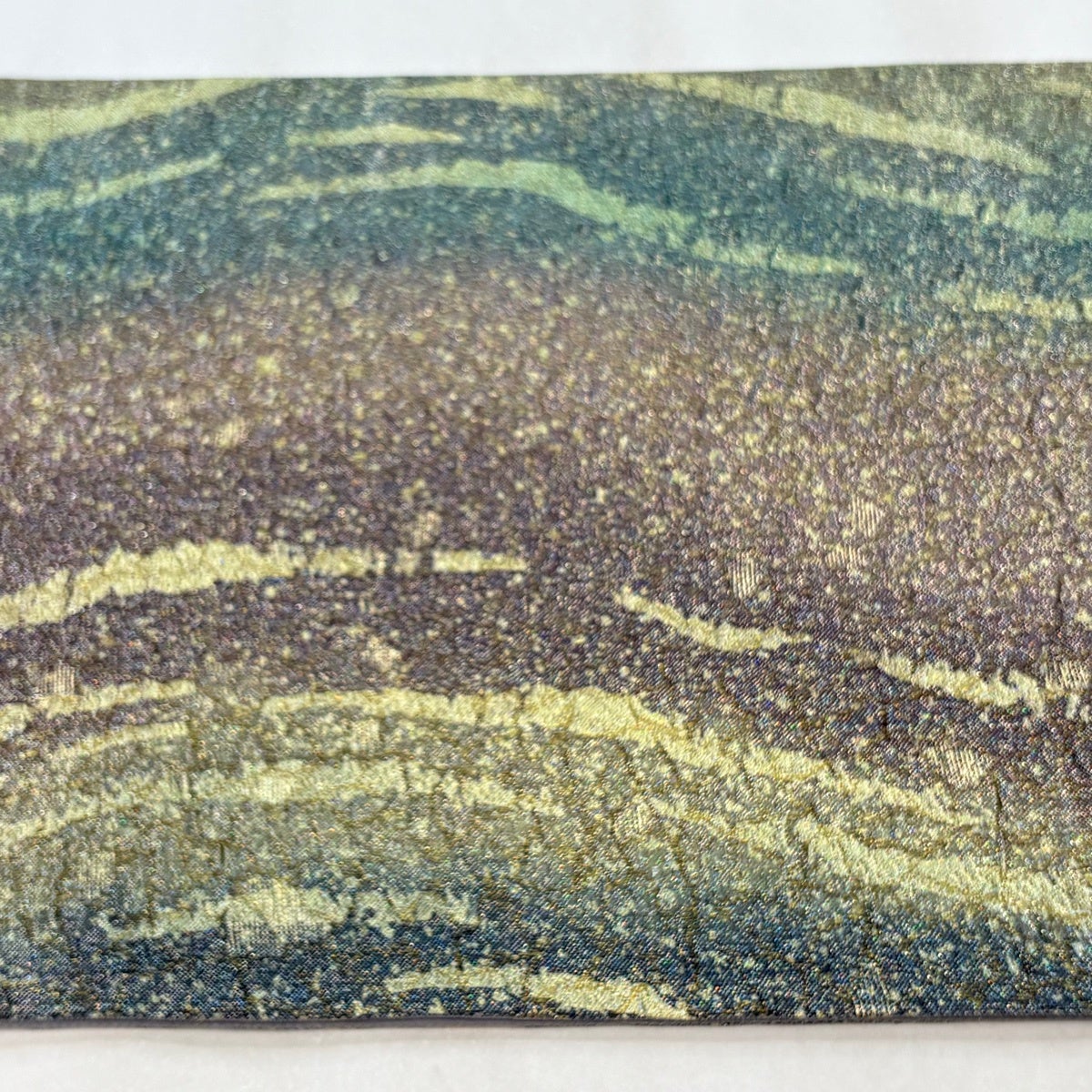 【美品】 袋帯 秀品 波 鴛鴦 箔 金銀糸 灰緑 六通 正絹
