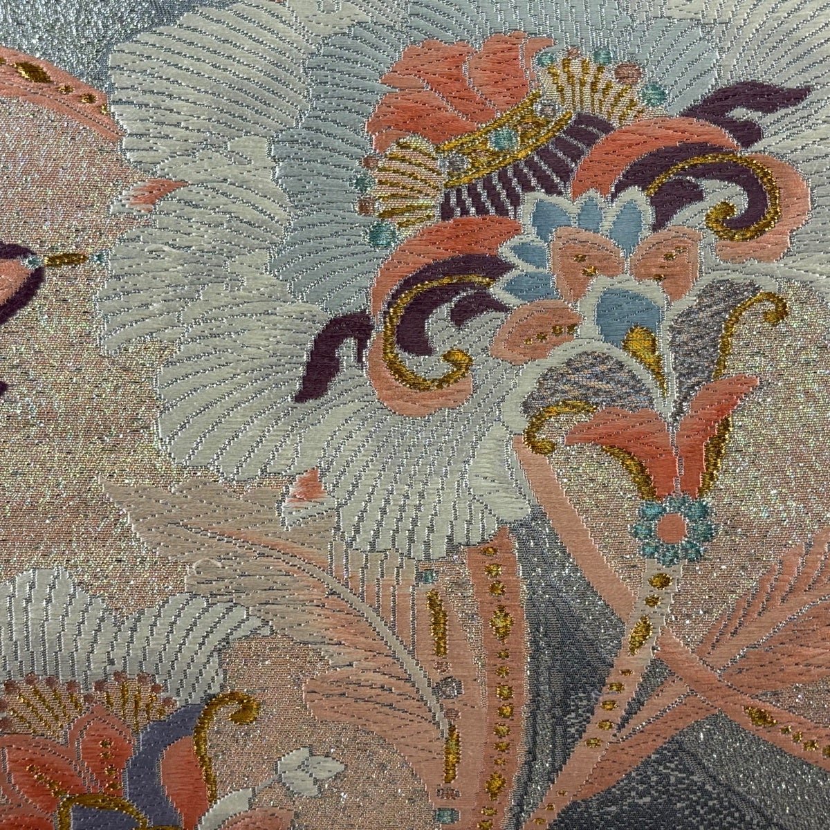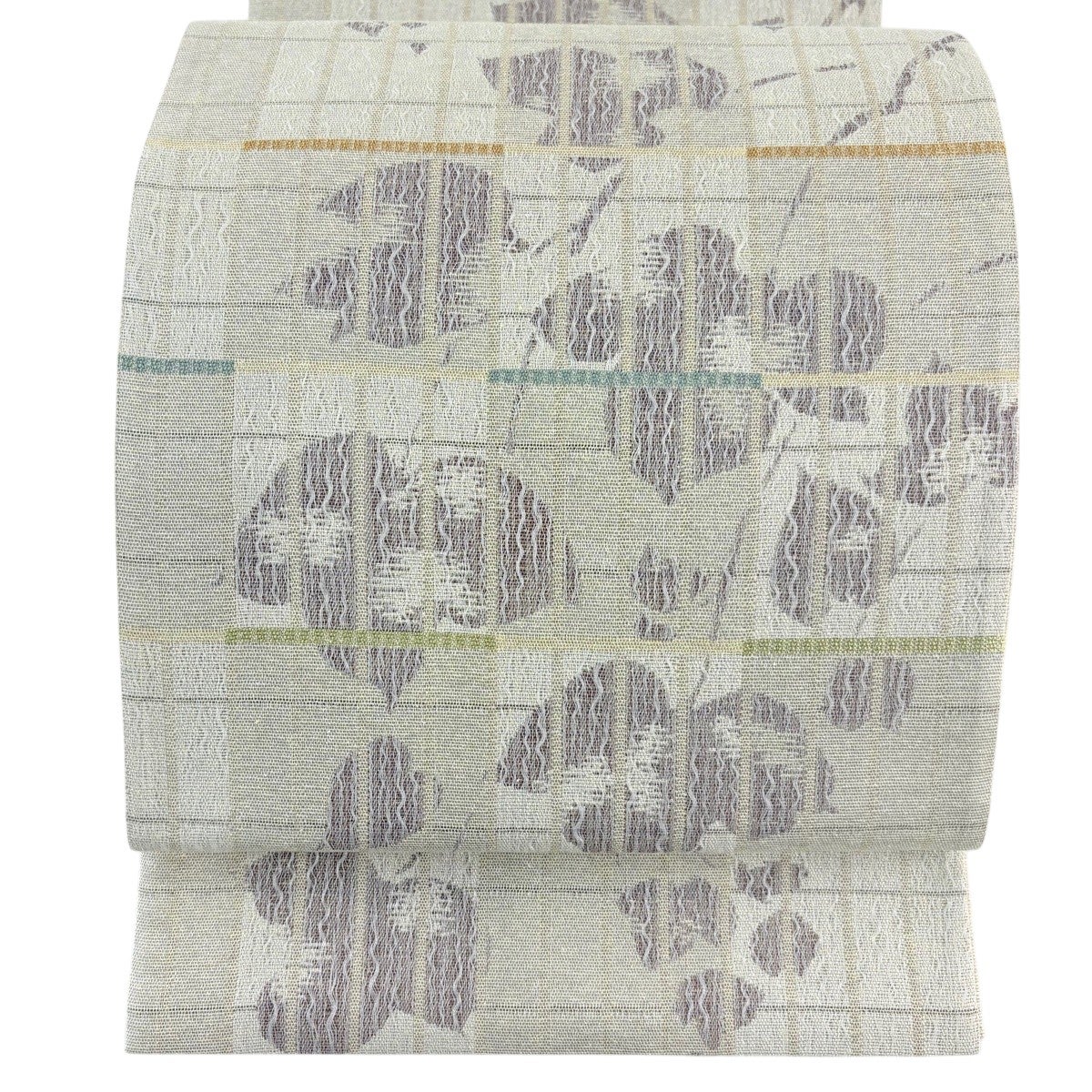 【美品】 袋帯 秀品 草花 幾何学模様 金銀糸 薄紫 六通 正絹