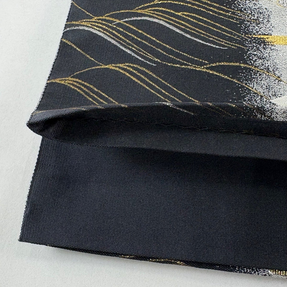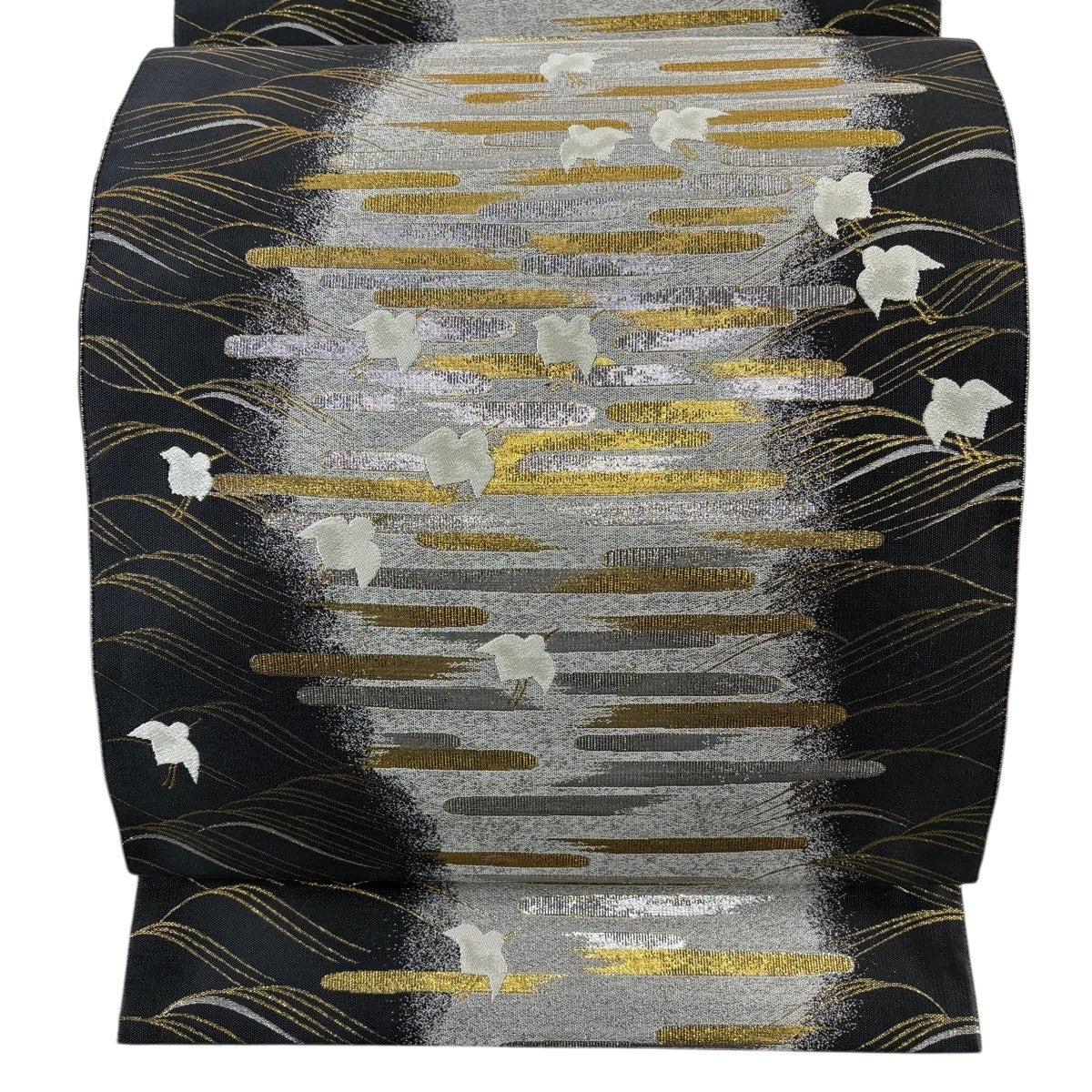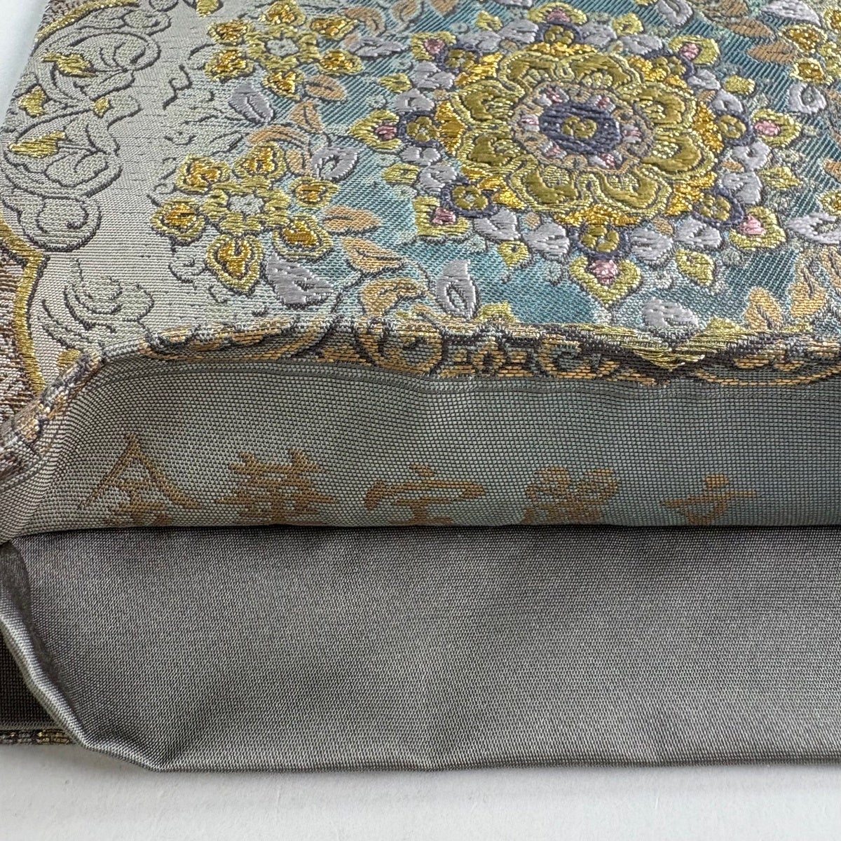 袋帯 秀品 水面 金彩 銀糸 灰色 お太鼓柄 正絹