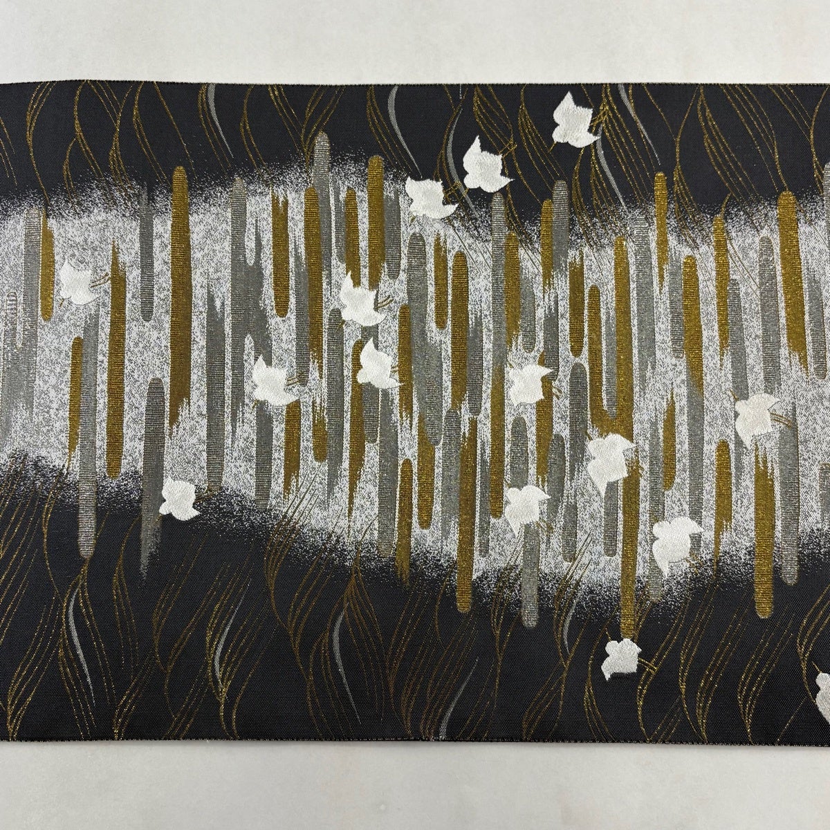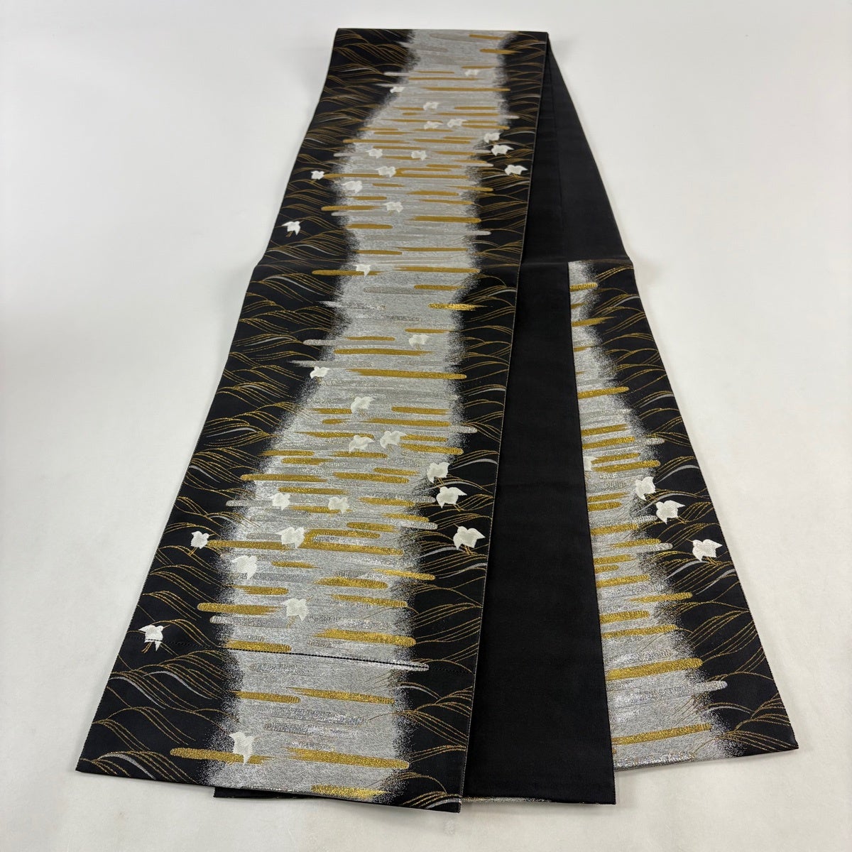 袋帯 秀品 露芝 流水 金銀糸 箔 銀色 六通 正絹