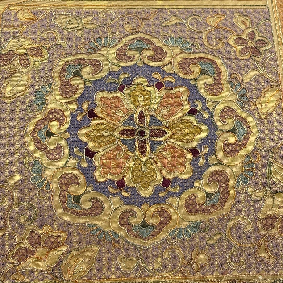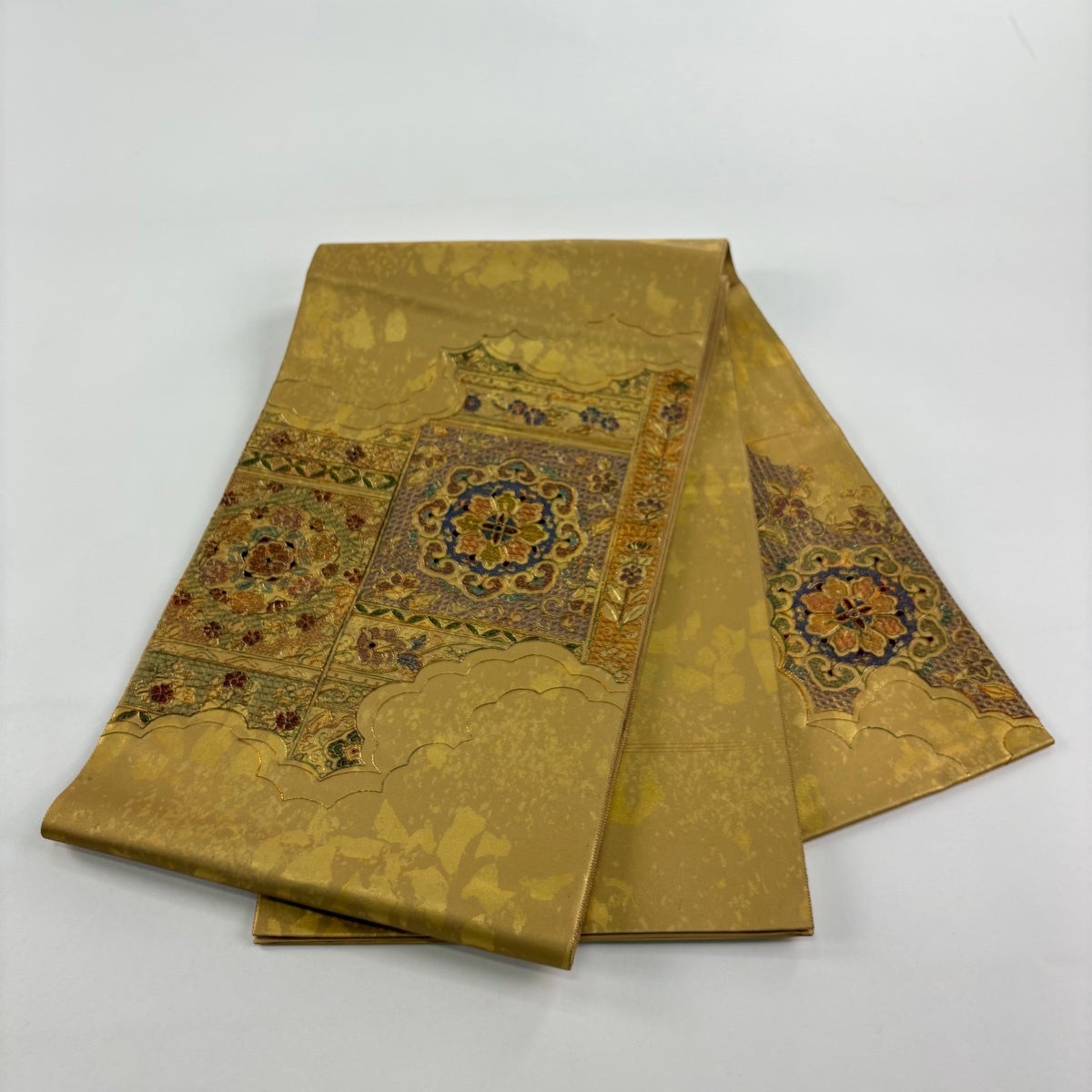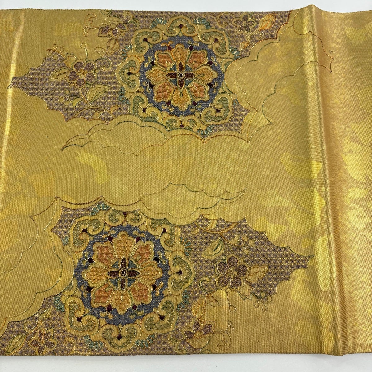 【美品】 袋帯 秀品 華文 逆さ雲取り 金糸 刺繍 金色 お太鼓柄 正絹
