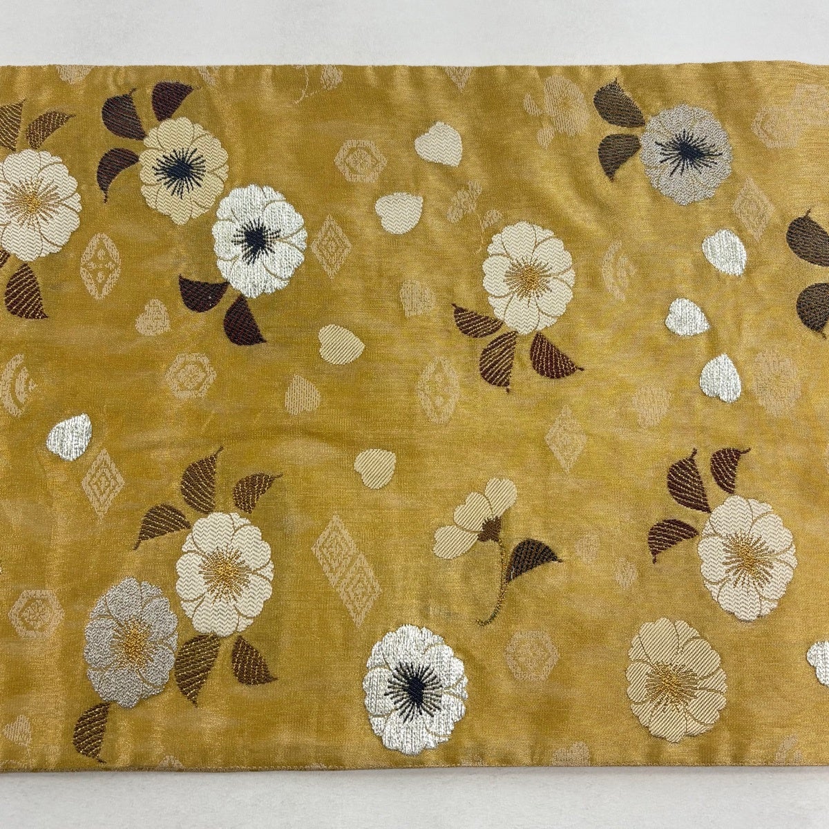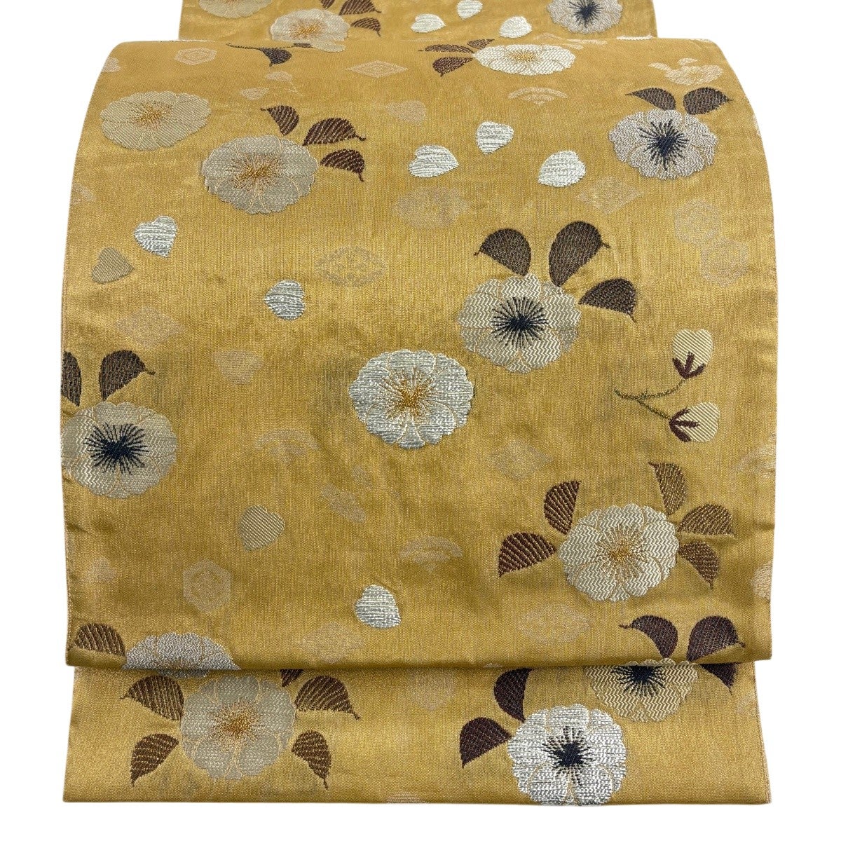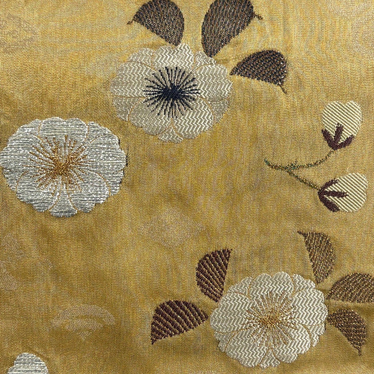 袋帯 秀品 草花 花びら 金銀糸 箔 金色 六通 正絹