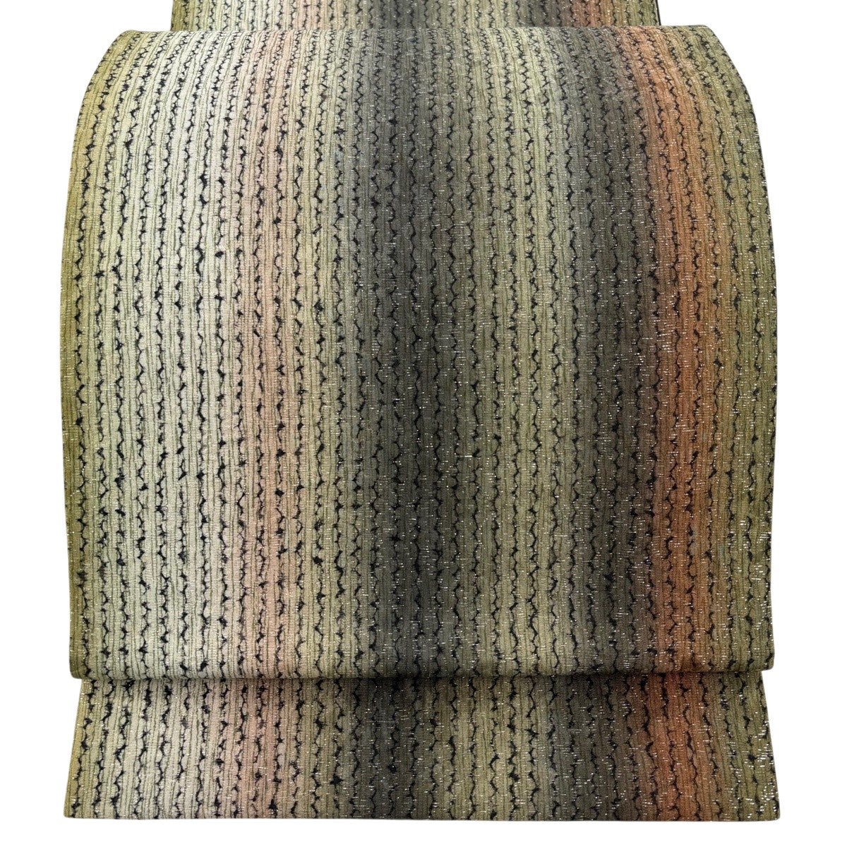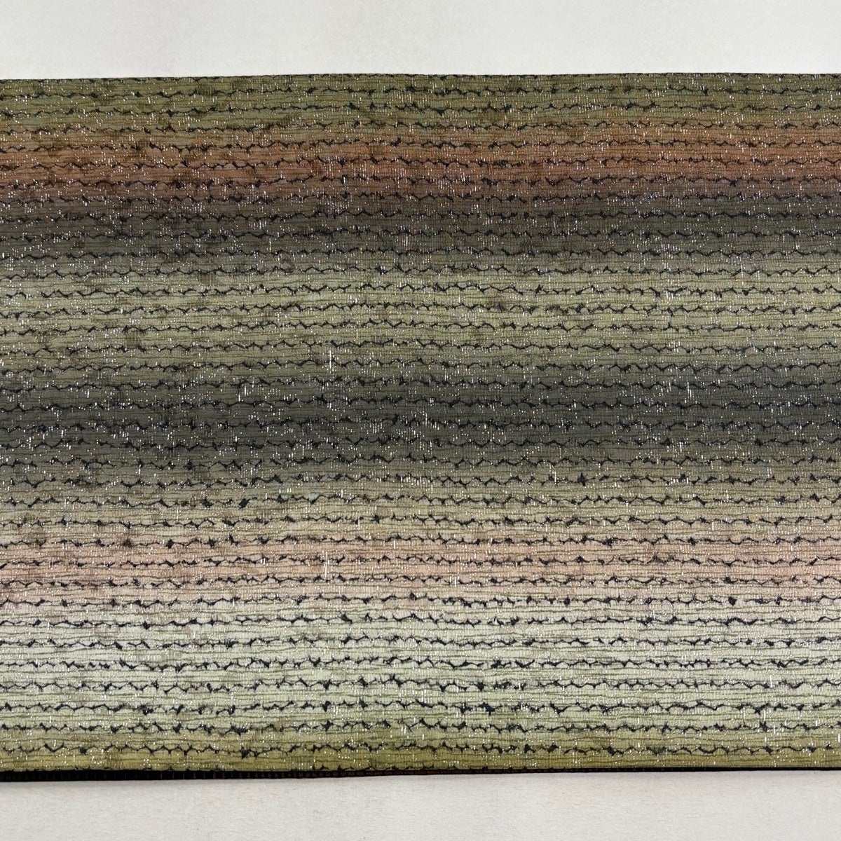 袋帯 秀品 幾何学模様 箔 ぼかし 灰緑 全通 正絹