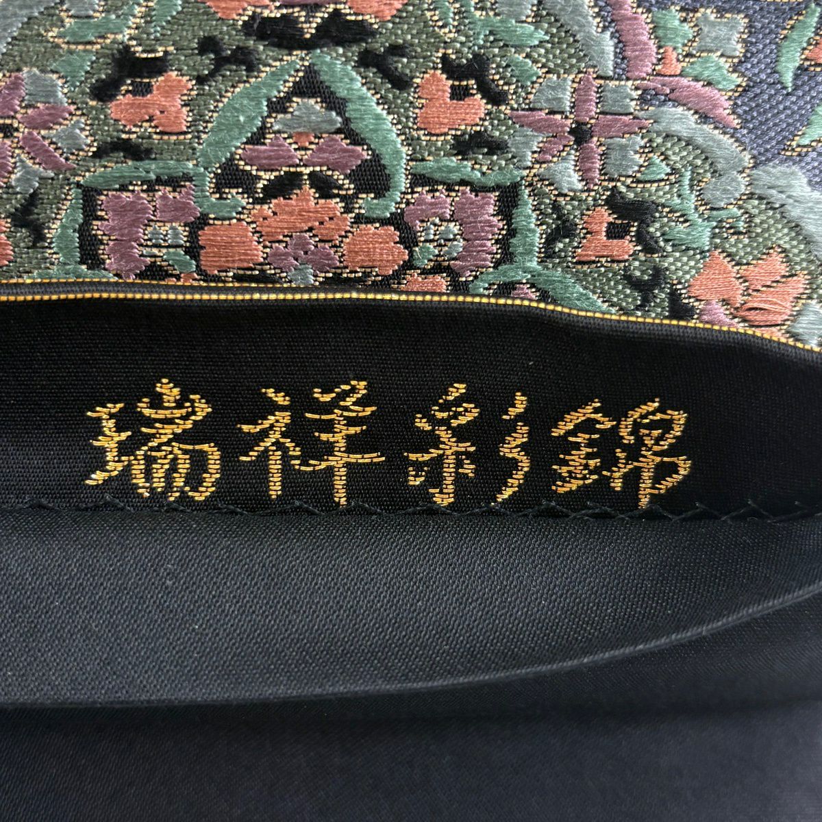 【在庫一掃】 袋帯 名品 落款あり 美佐 神楽岡 幾何学模様 泥染 灰色 六通 正絹