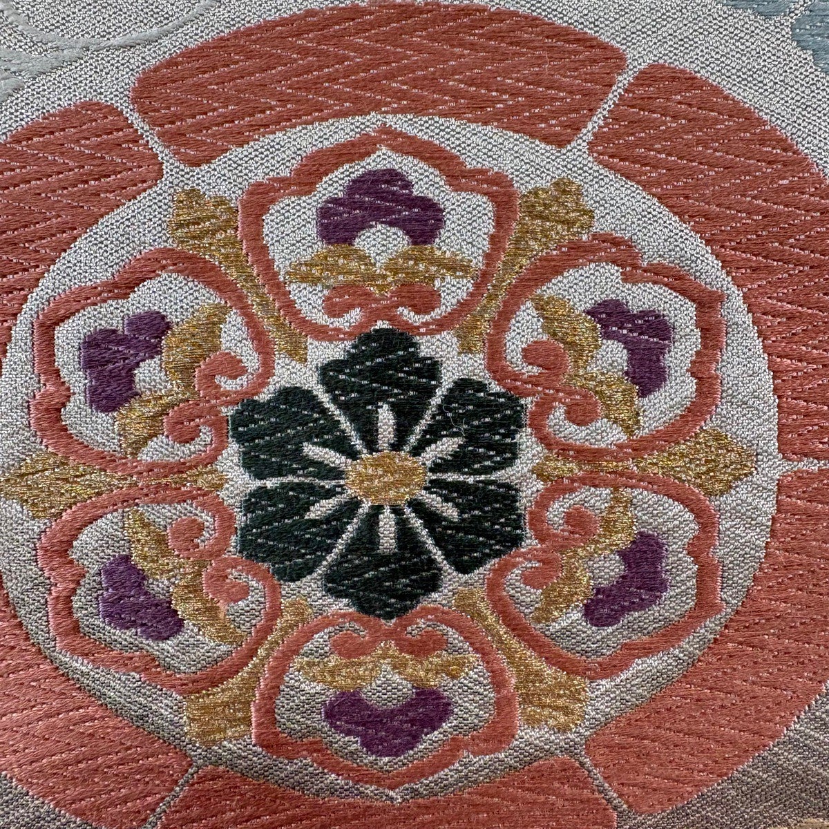 袋帯 秀品 菱 花 金銀糸 箔 灰白 六通 正絹