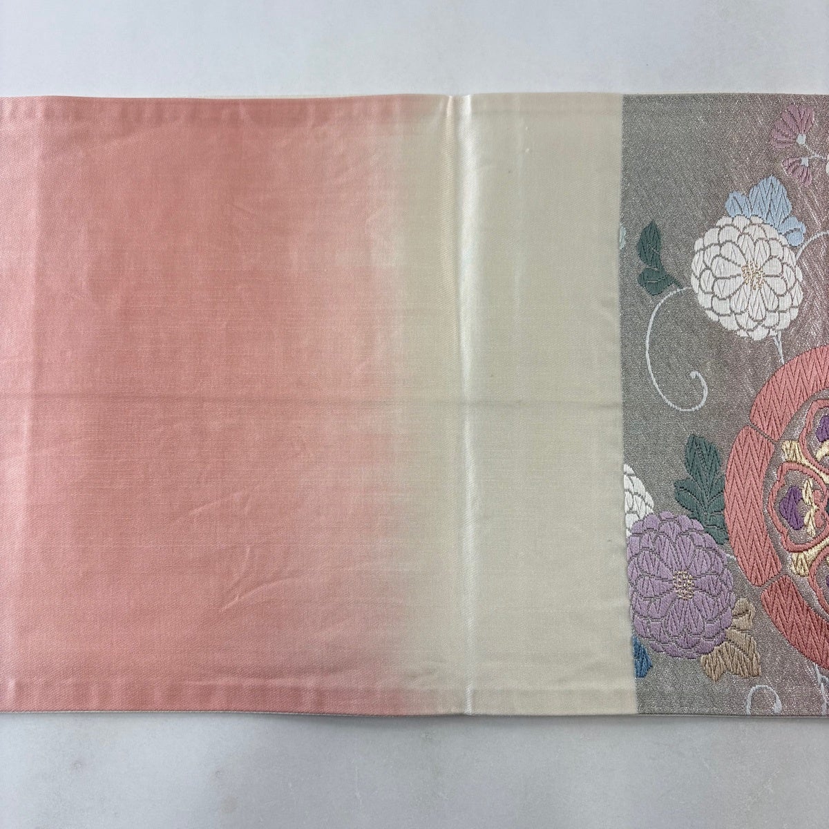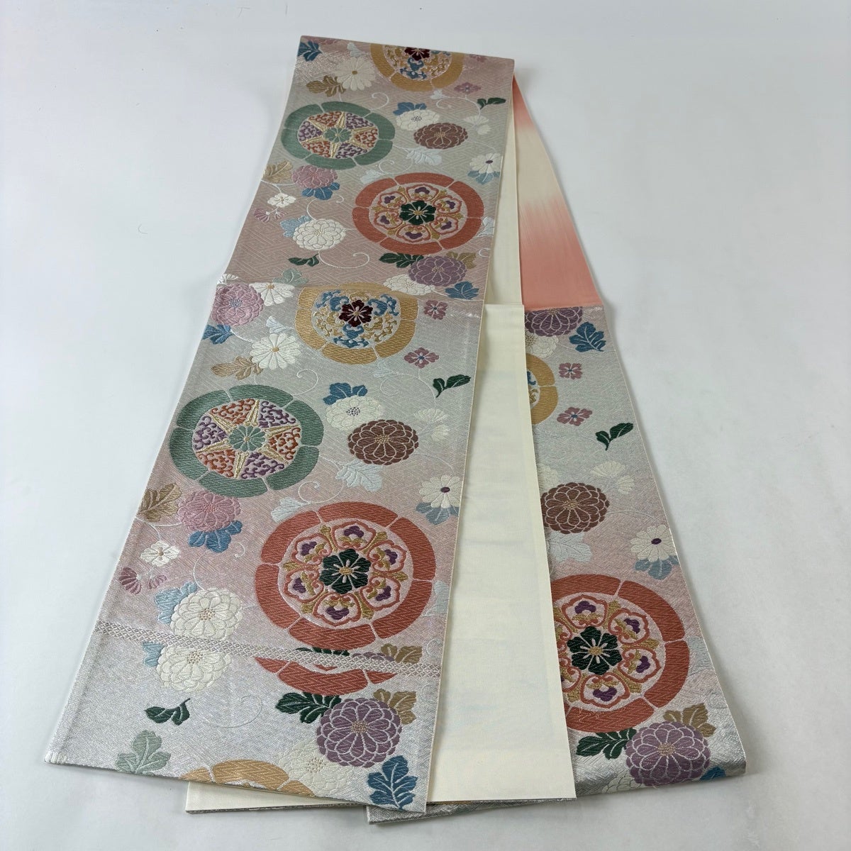 袋帯 秀品 華文 流水 刺繍 ピンク お太鼓柄 正絹