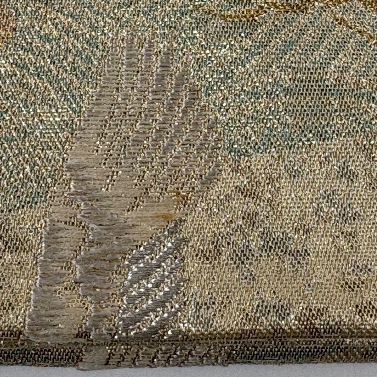 袋帯 秀品 菱 花 金銀糸 箔 灰白 六通 正絹