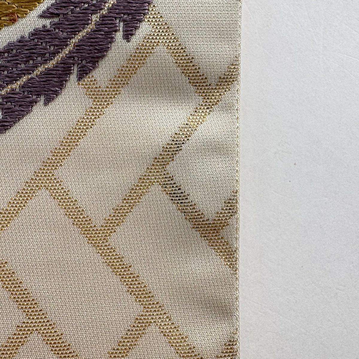 袋帯 秀品 帝王紫 落款あり 波頭 銀糸 箔 クリーム お太鼓柄 正絹