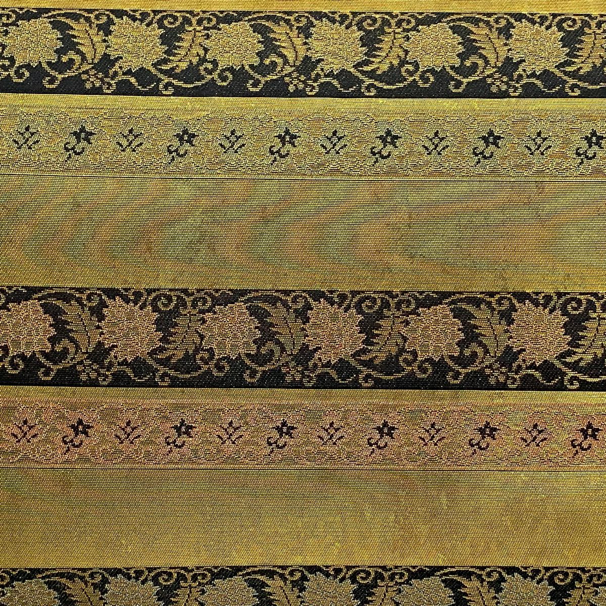 袋帯 秀品 花鳥 縞 箔 金糸 山吹茶色 六通 正絹