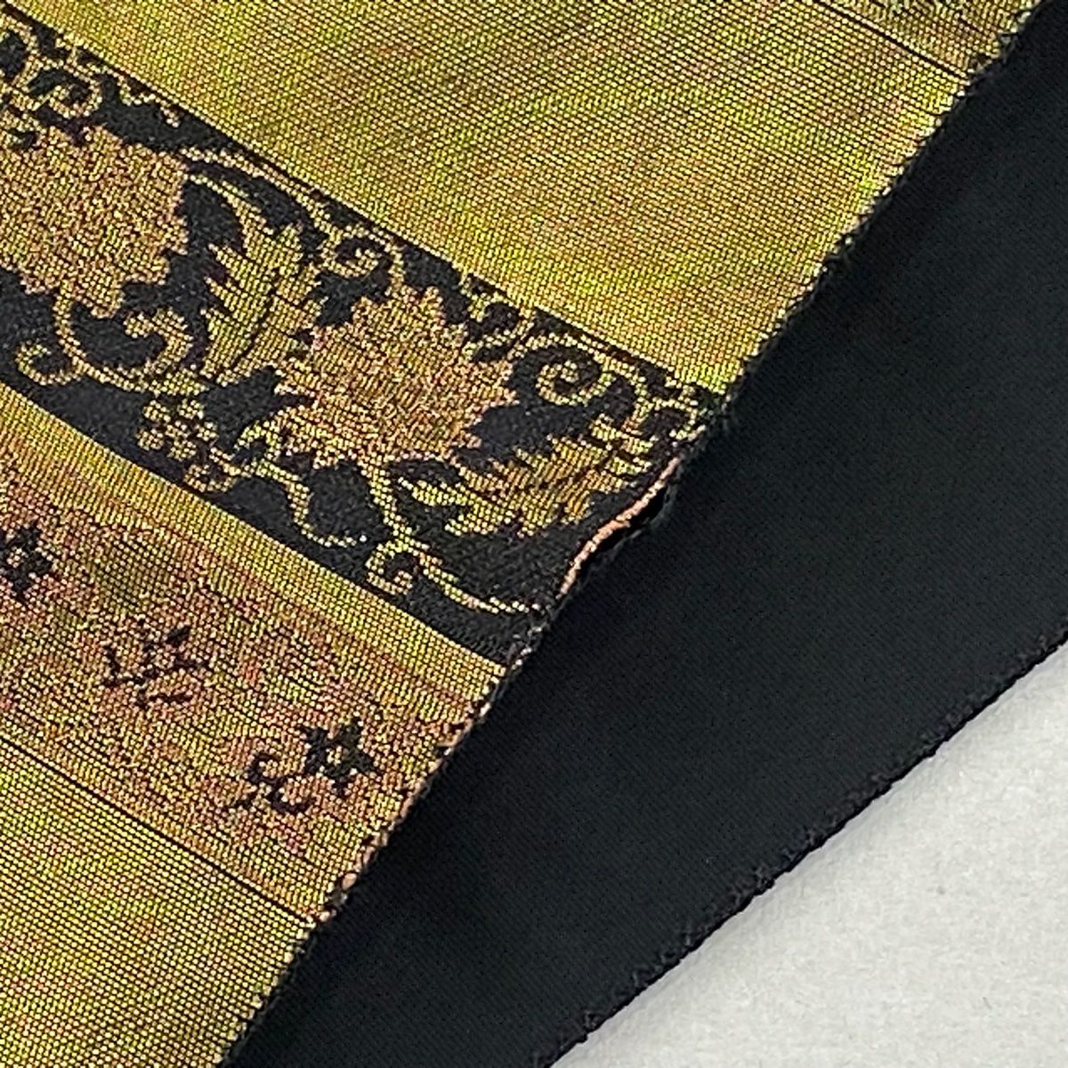 袋帯 秀品 麗流春花 唐織 箔 黒 六通 正絹