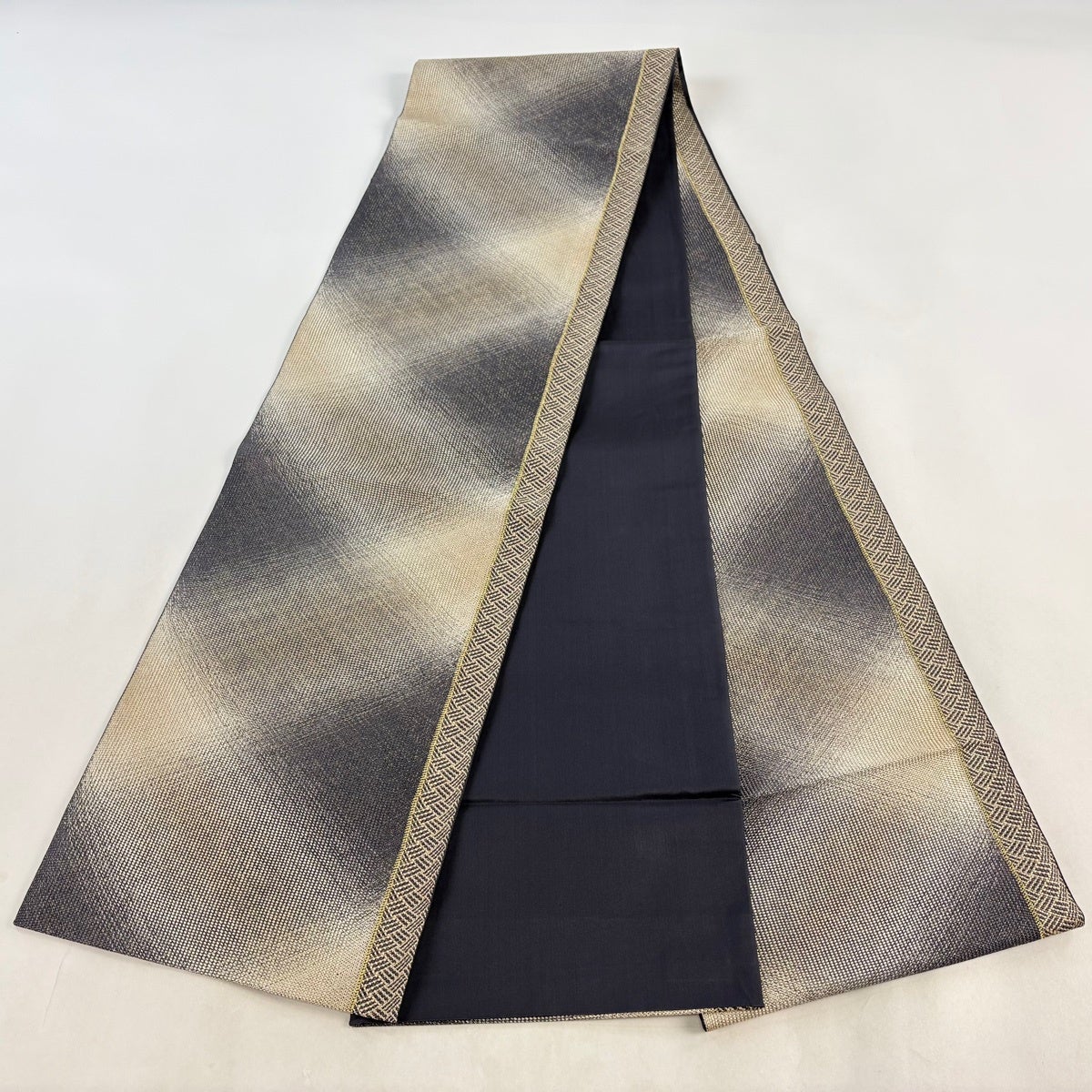 【美品】 袋帯 秀品 霞 金糸 ぼかし 灰色 全通 正絹
