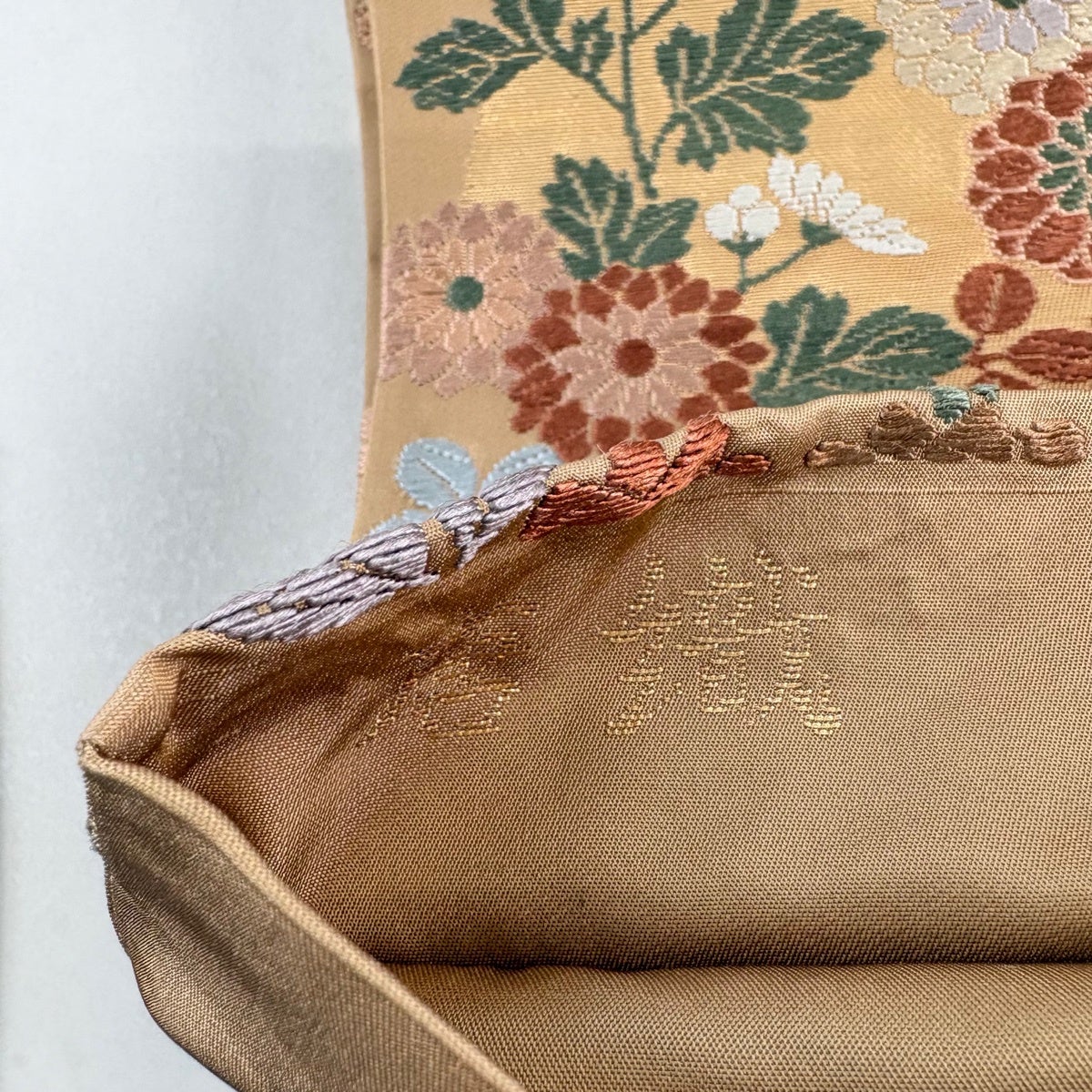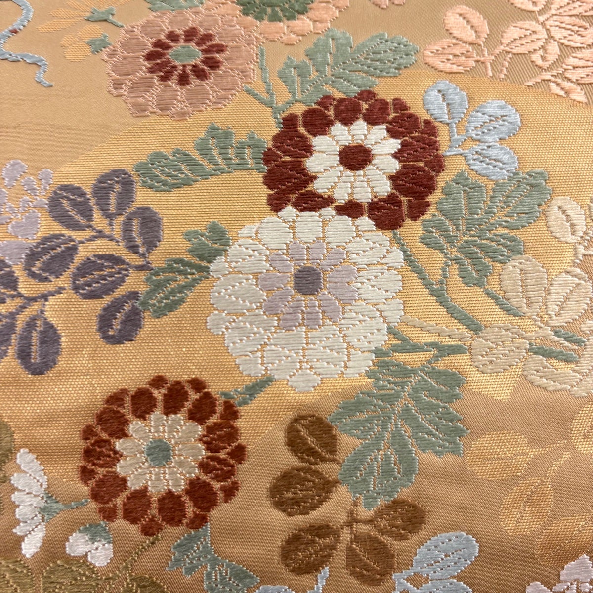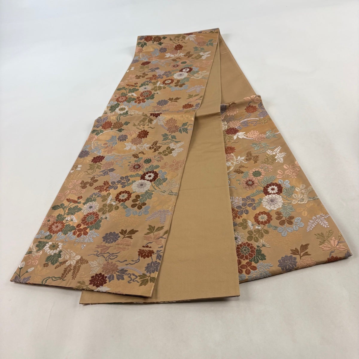 袋帯 秀品 秋草文 扇面 唐織 箔 薄茶色 六通 正絹