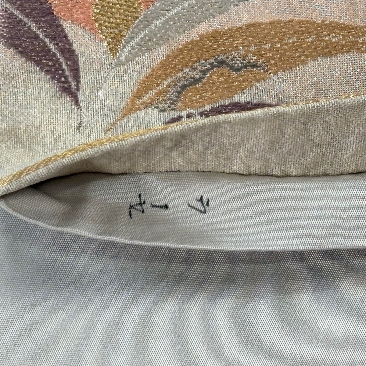 袋帯 秀品 室華風 落款あり 幾何学模様 箔 斜めぼかし 薄茶色 全通 正絹